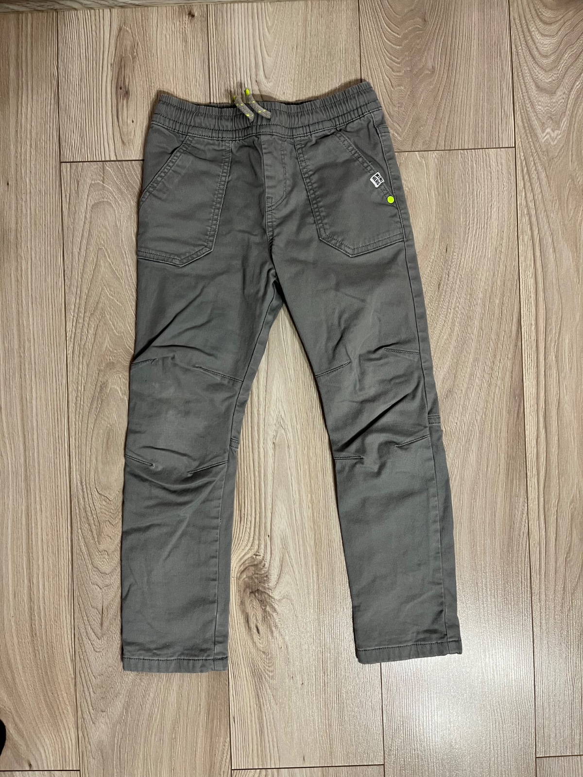 Chlapčenské podšité nohavice, máli nosené vo velmi dobrom stave. Na jednom kolene je trcha suchnute, inak bez poskodeni. V pase je funkcna snurka na stiahnutie.