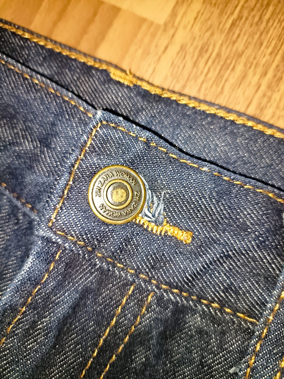 Pánske nohavice značky Zara v tmavomodrej farbe. Klasický rovný strih, vhodné na bežné nosenie aj do práce. Príjemný a pevný materiál