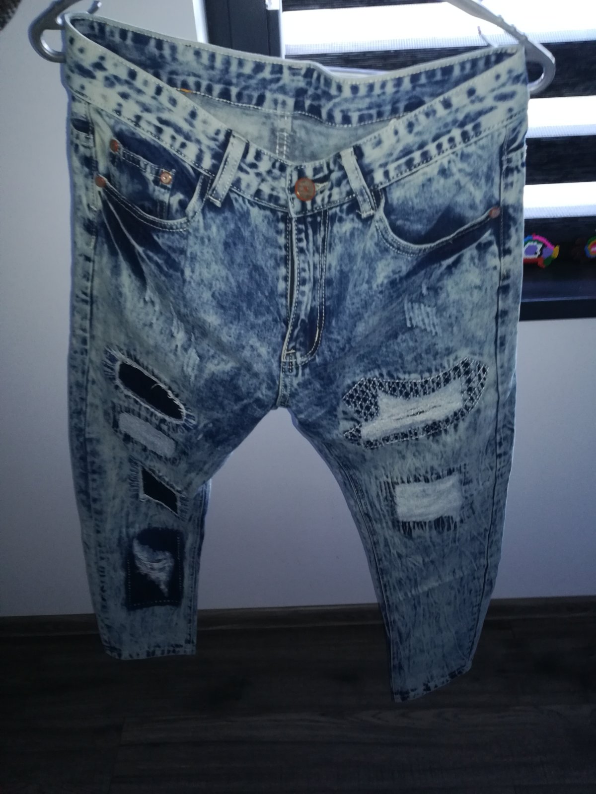 Predám málo nosené rifle nemajú žiadne poškodenie,dĺžka 100 CM,pás 41 cm,vysuchanie na stehnas nieje také výrazné len mi to nešlo lepšie odfotit