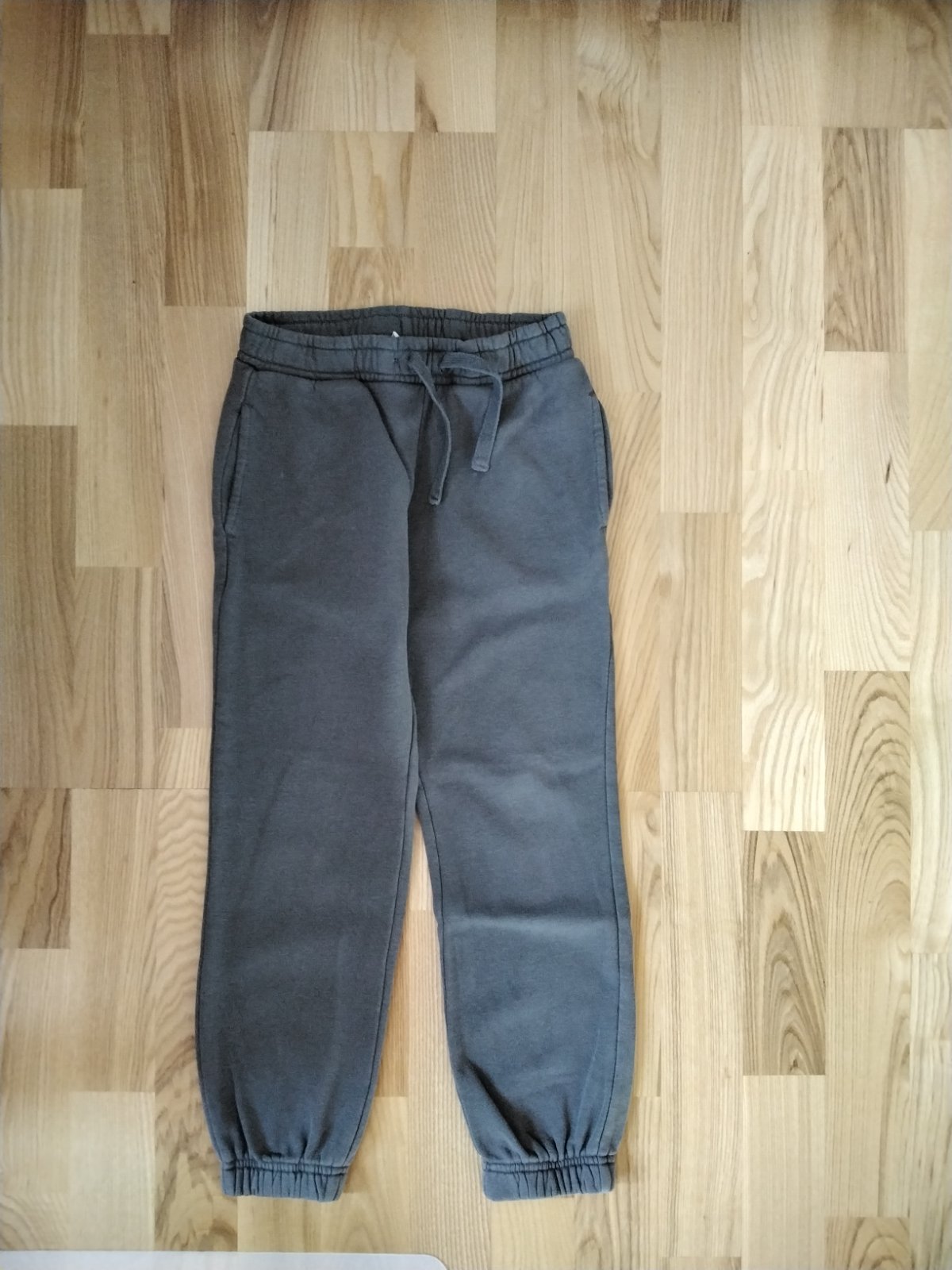 Tepláky mierne odrene koleno, podarilo sa nám padnúť v nových teplákoch, viď.foto zohľadnené v cene Inak bez poškodenia, bez známok vyprania, oblečené pár krát