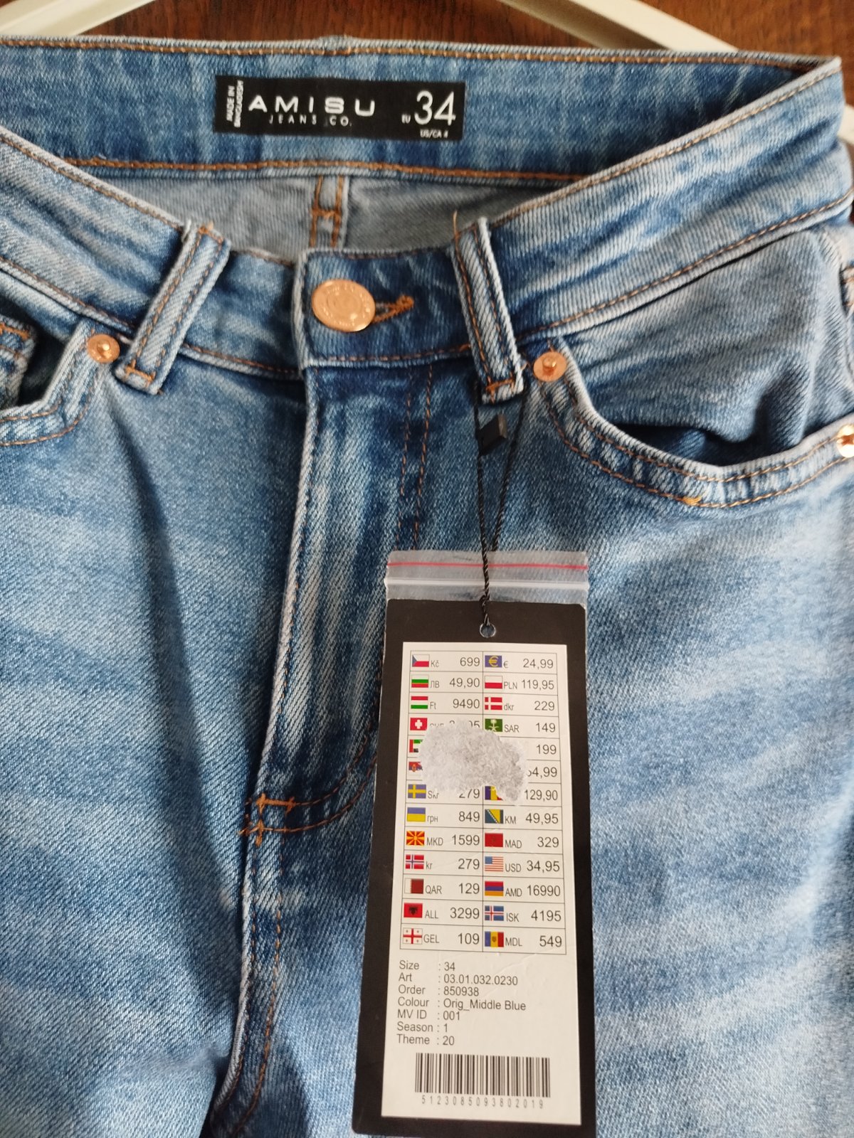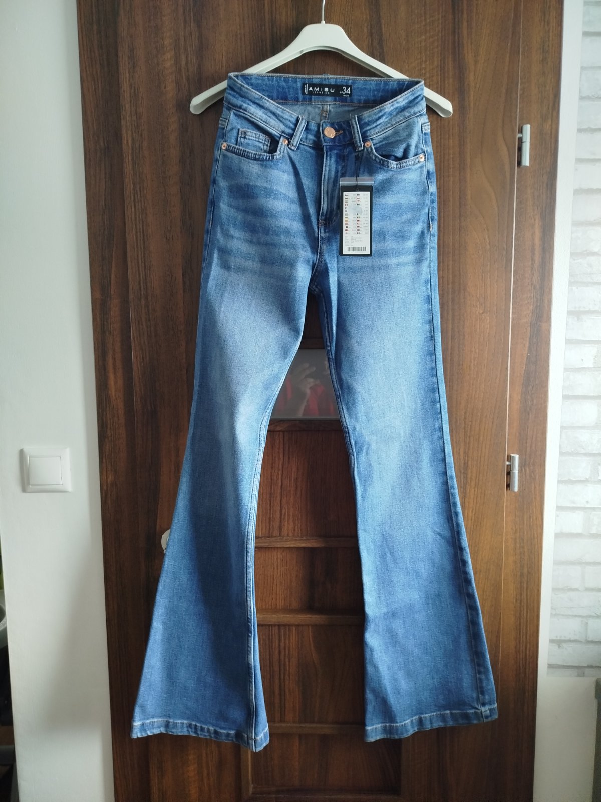 Nové rifle s visačkou. Vysoký sed.