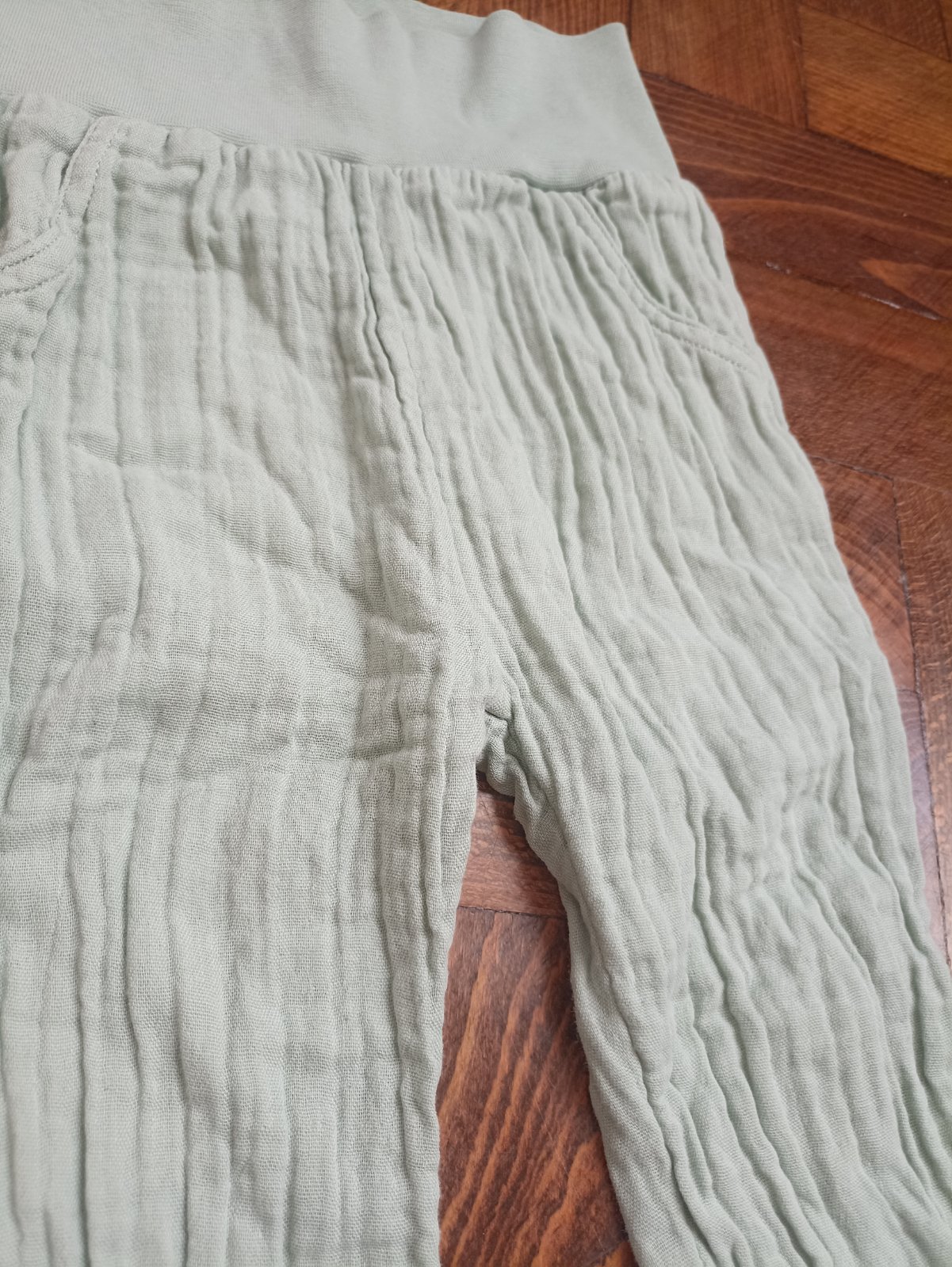 Nové,len oprané a skladované detské mušelínové nohavice. Farba je jemná zelená, veľkosť 92. Podľa mňa vhodné pre dievčatko aj pre chlapčeka.