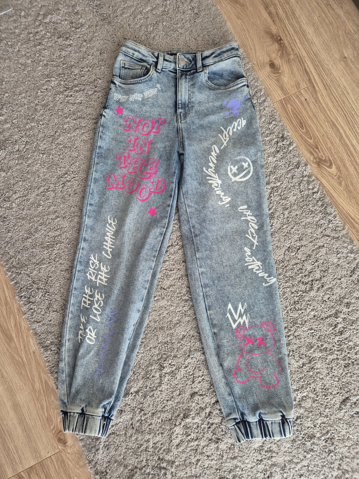 Široké rifle s anime obrázkami,veľ.XS