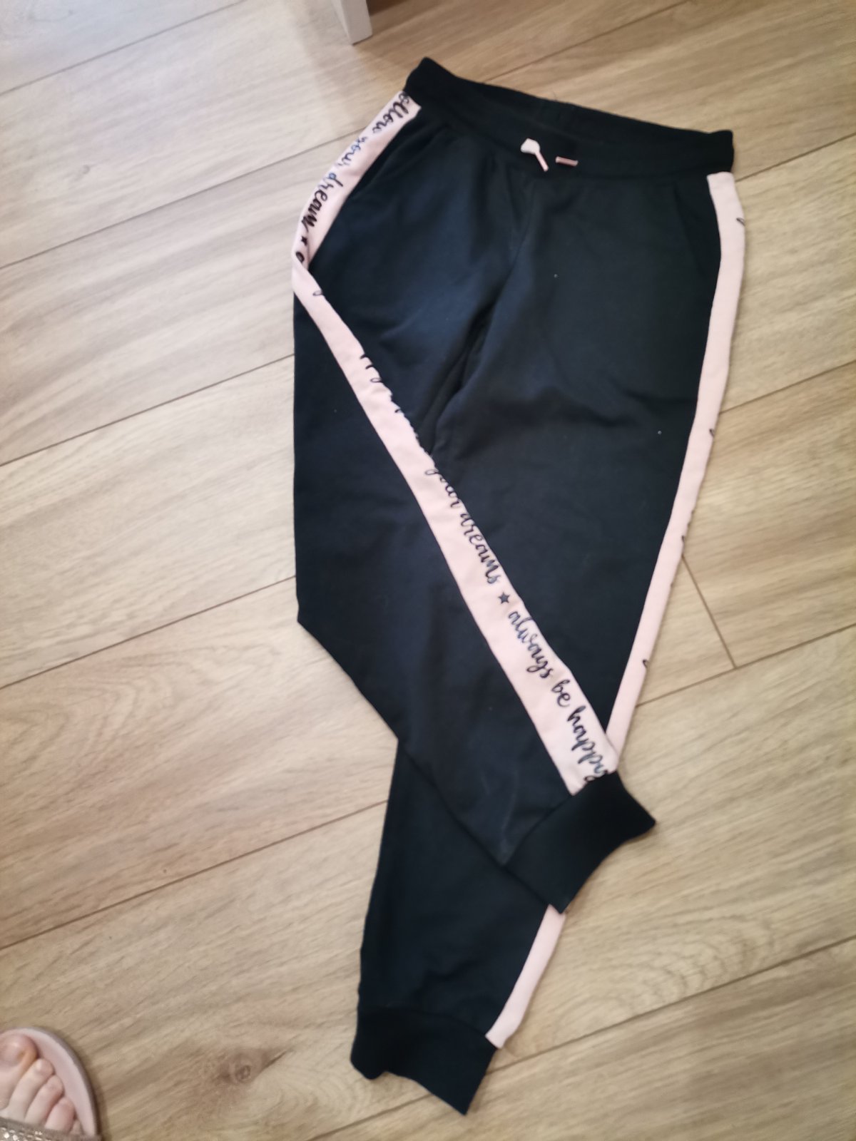 Ponúkam krásne teplačky, sú zateplené. Dcérka ich nosila na telocvik ale len pár mesiacov nie dlho. Veľkosť je 140/146.