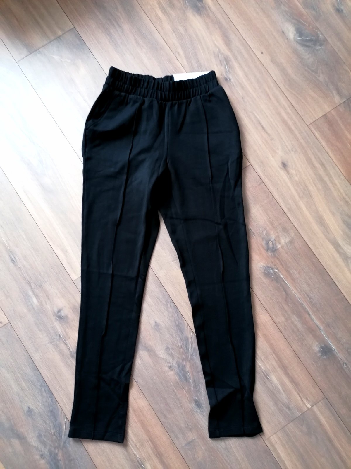 Nové, len odskúšané nohavice ešte s visackou, nesadol strih, ale veľkostne sedia. Dajú sa nosiť na športovo s trickom aj na pekno s bluzkou. Šírka pas v kľude 32 cm (natiahne sa až na 36 cm, je to gumička), dĺžka 94 cm.