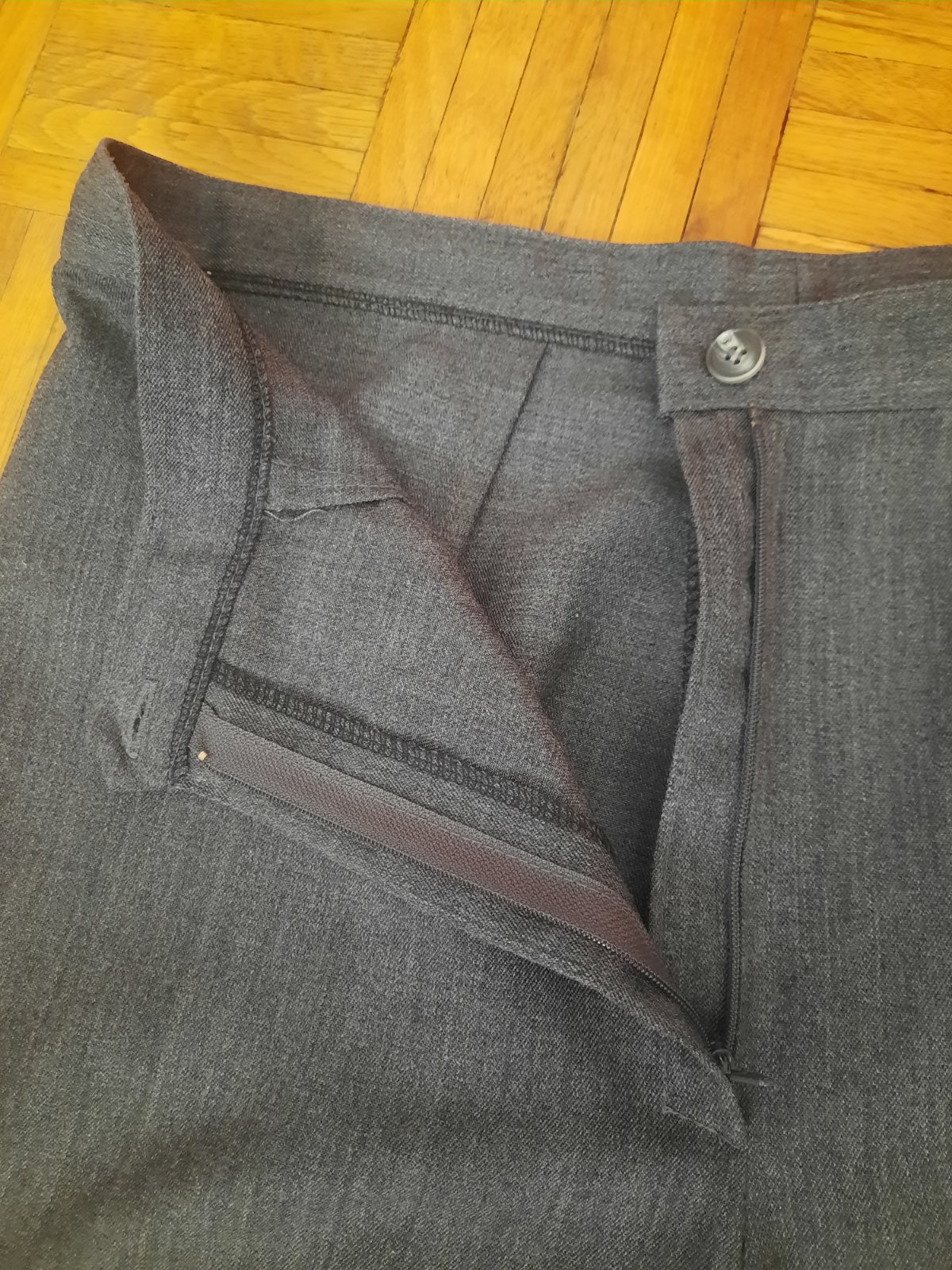 Nádherné nohavice sivý melír s čiernymi pásikmi po bokoch vsadkami na vreckách.vyborny materiál.mbe sú žiaľ malé.su len odskúšané, doviezla mi ich kamoška z anglicka, nemala som príležitosť ich obl...