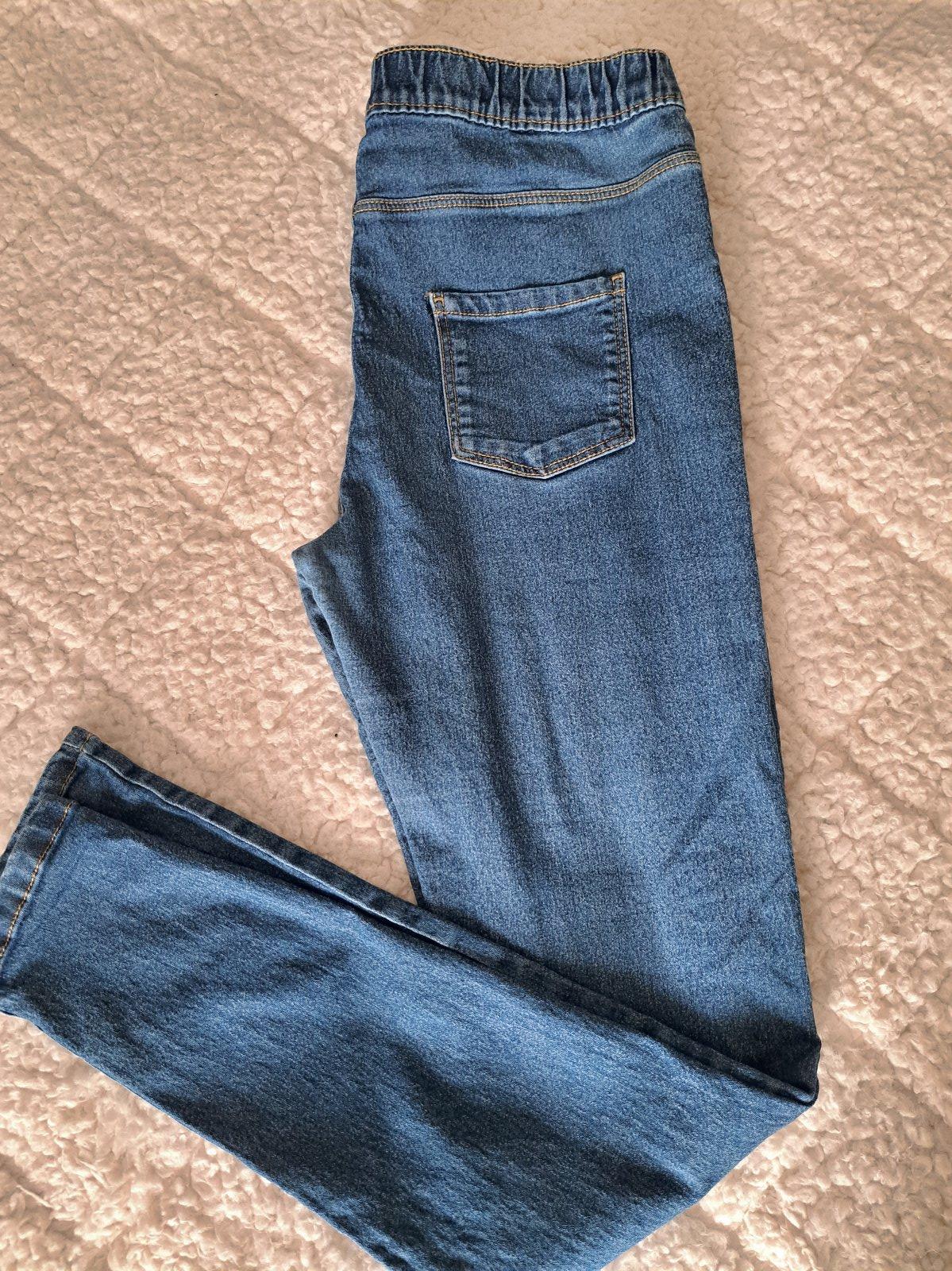 málo nosené pekné rifle s výšivkou kvetín,bez poškodenia,v páse aj na sťahovanie gumou +gombík zips dĺžka 91cm, na 11-12rokov pás sa dá natiahnuť až do 72cm