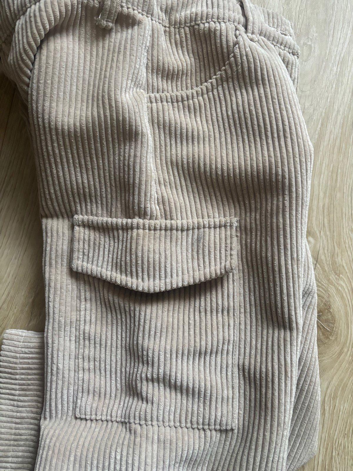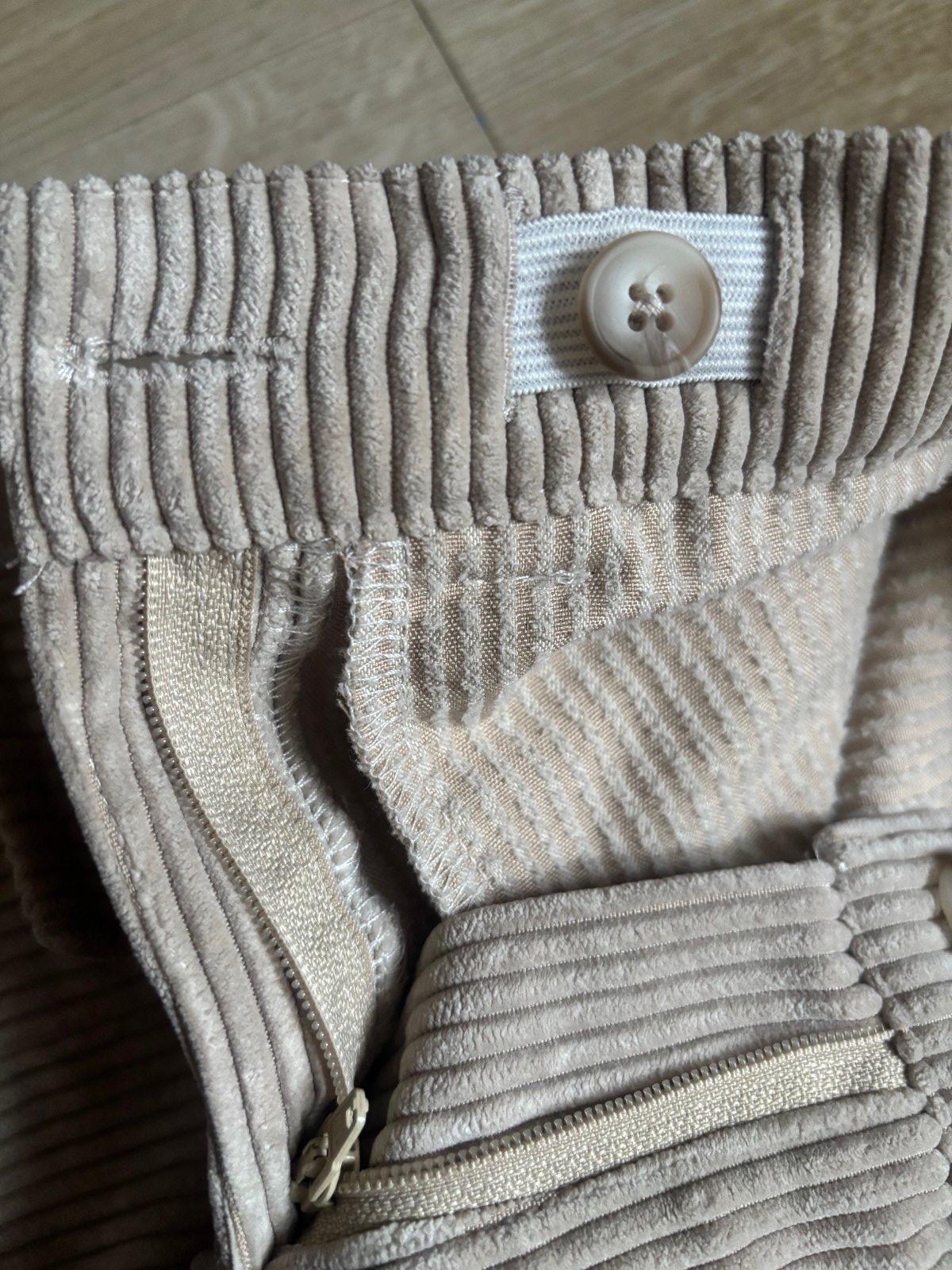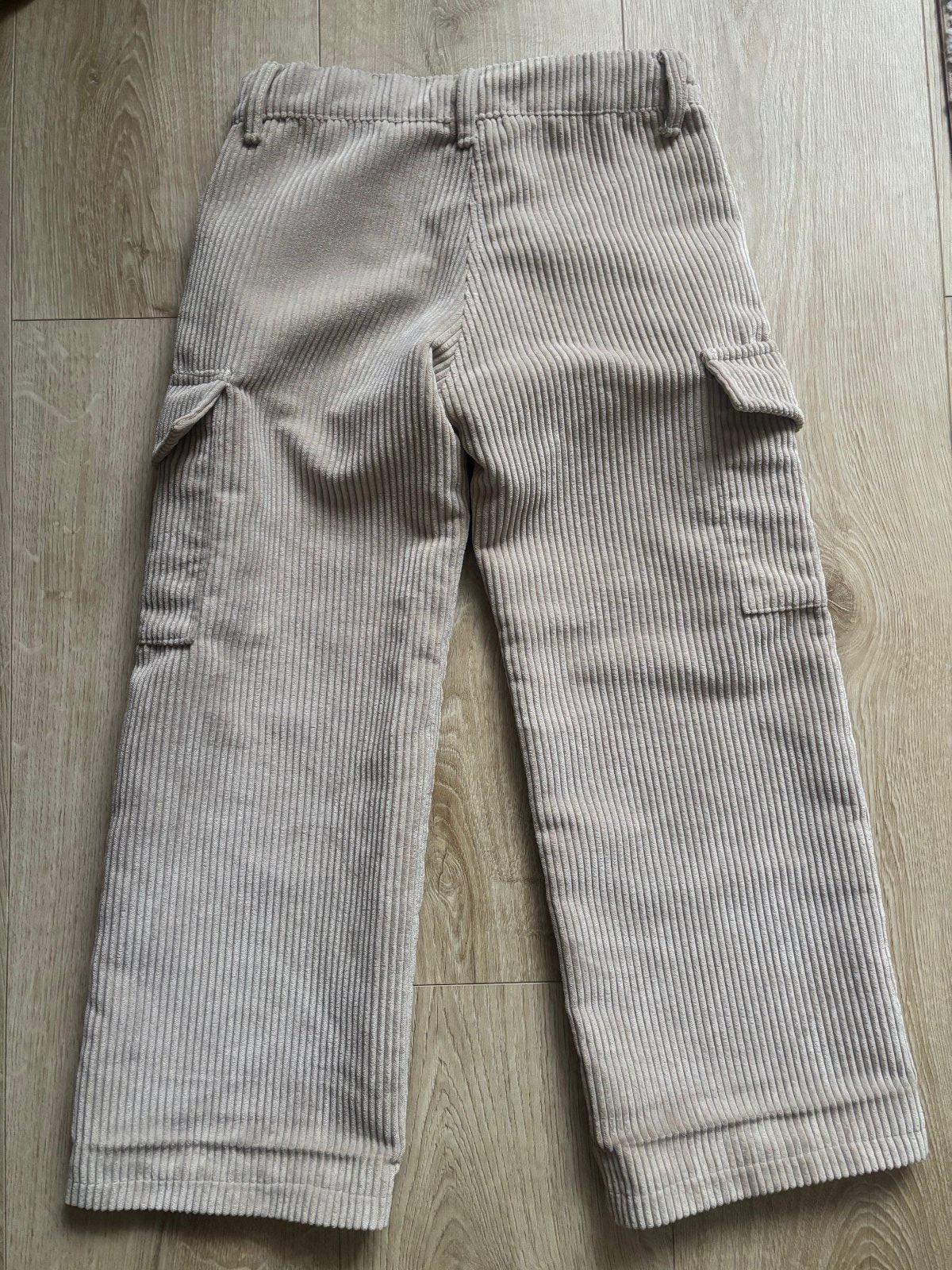 Pás sa dá prispôsobiť cez gombík (viď foto). Širšie na nohách s veľkými funkčnými vreckami. Hrubý menčester. Velmi príjemné