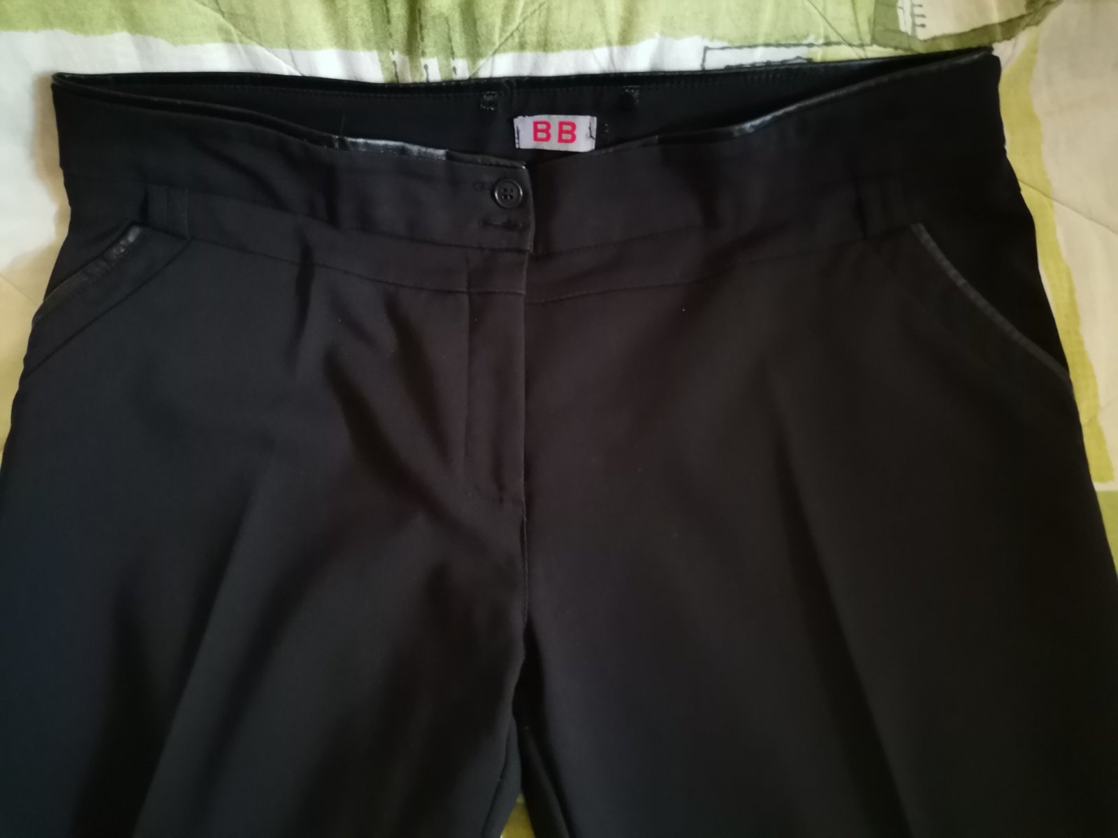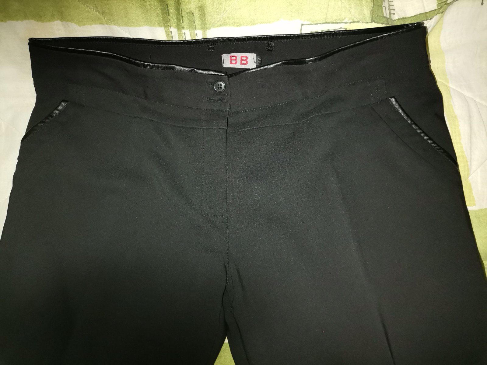 Ponúkam na predaj krásne čierne nohavice z kvalitného materiálu. Majú potiahnuté vrecká a pás čiernou koženkou., veľ. 44