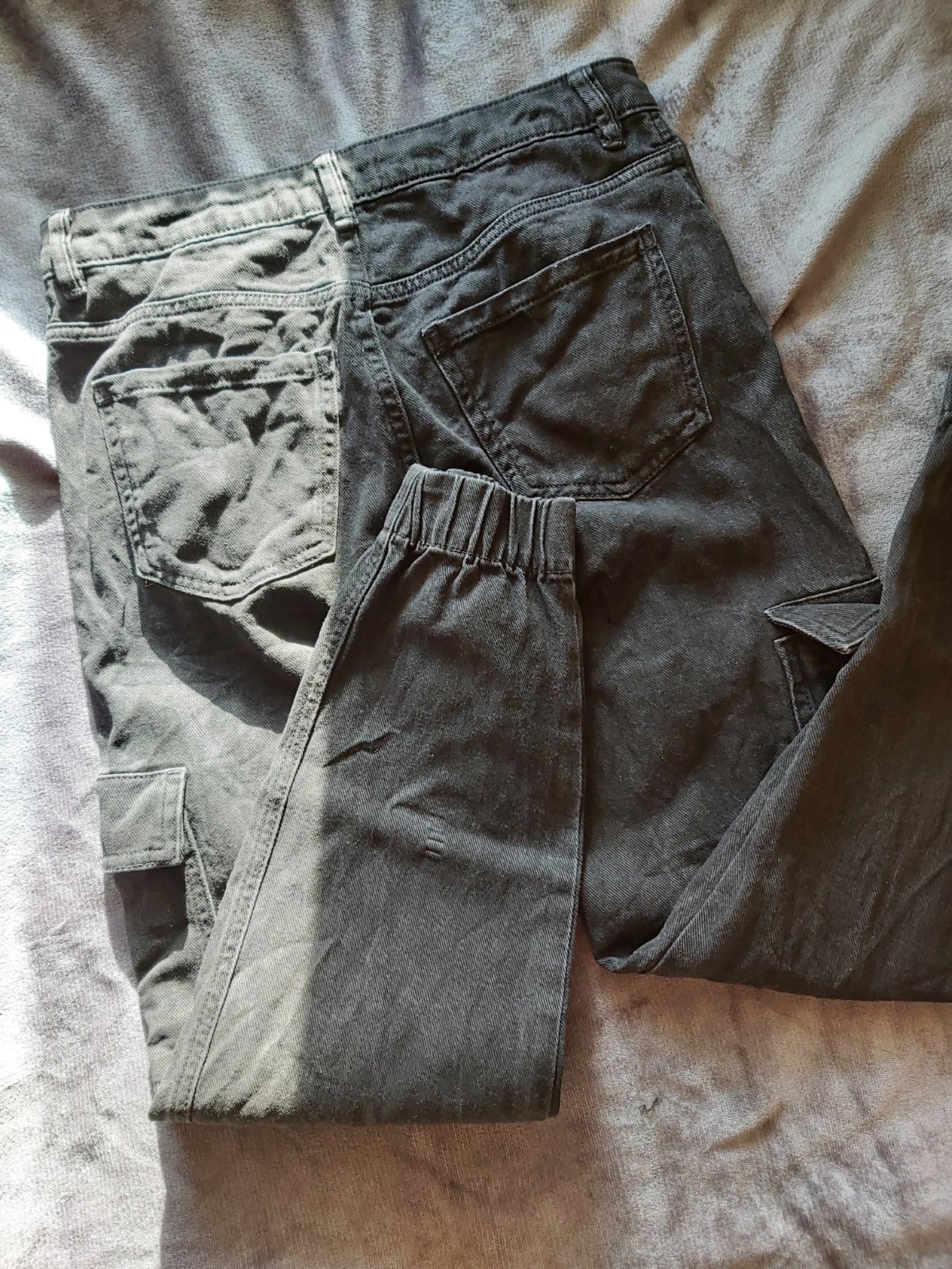 Malo nosené čierne rifľové nohavice. Zospodu sú strapce, ktoré ich oživujú. Cena: 6 eur + poštovné
