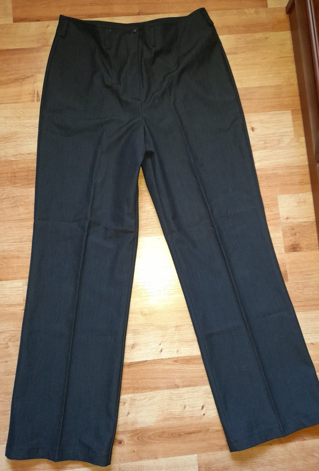 dĺžka 94 cm, šírka v páse 38x2 cm, farba sivo čierna, top stav, široké nohavice