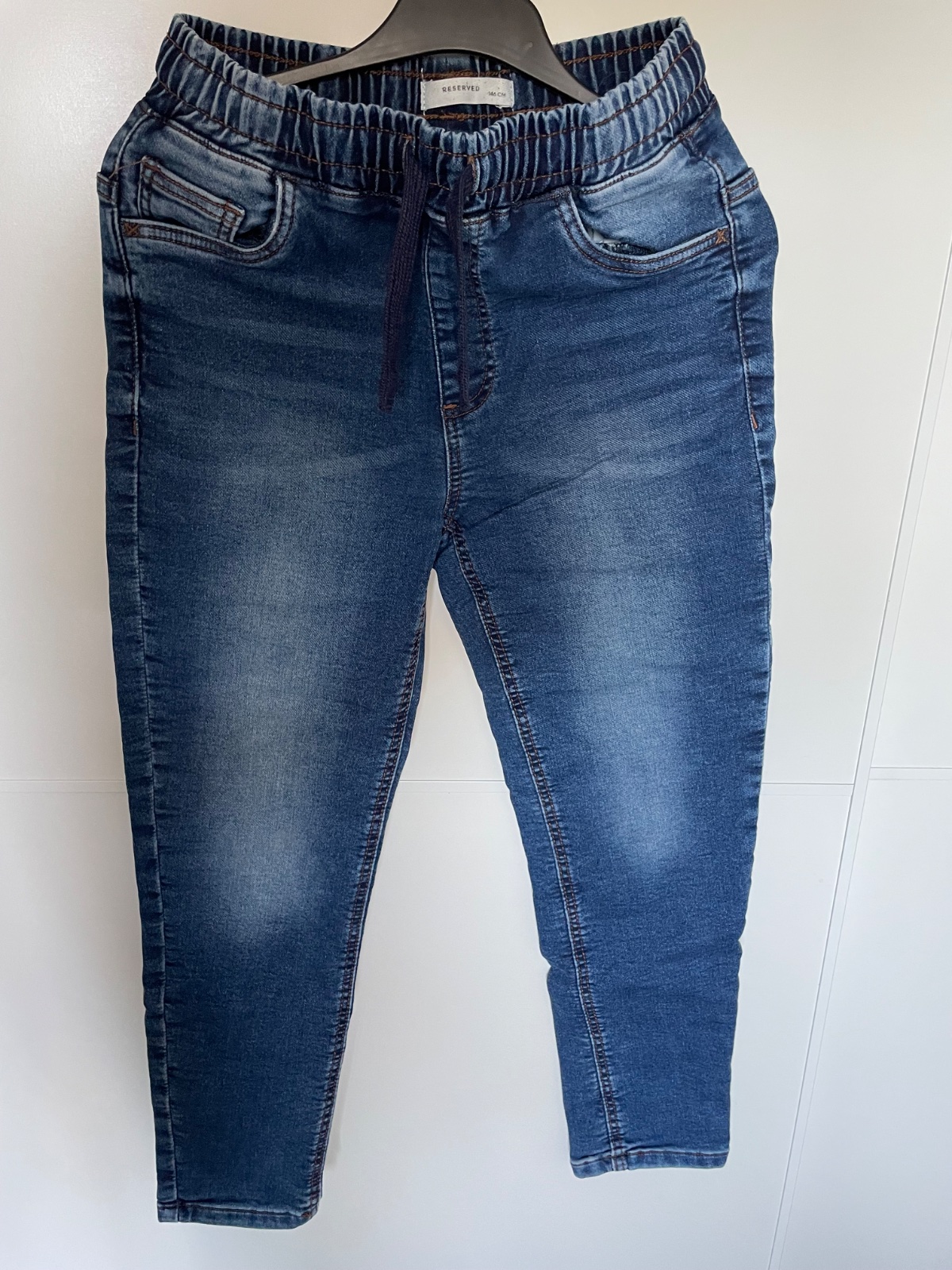 Rifle po synovi. zn.reserverd a pepperts. Dvoje na gumu jedny na gombik. Rifle majú na kolienku od trávy skvrnu ako vidno na foto, šikovná mamička vyperie. Všetko je zohladnene na cene. Myslím že e...