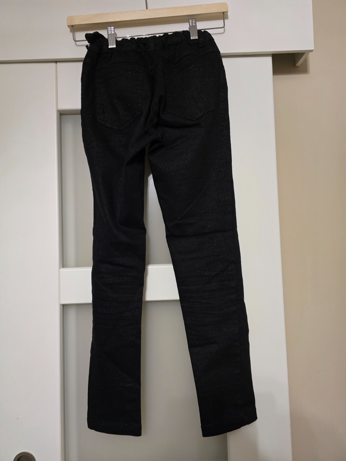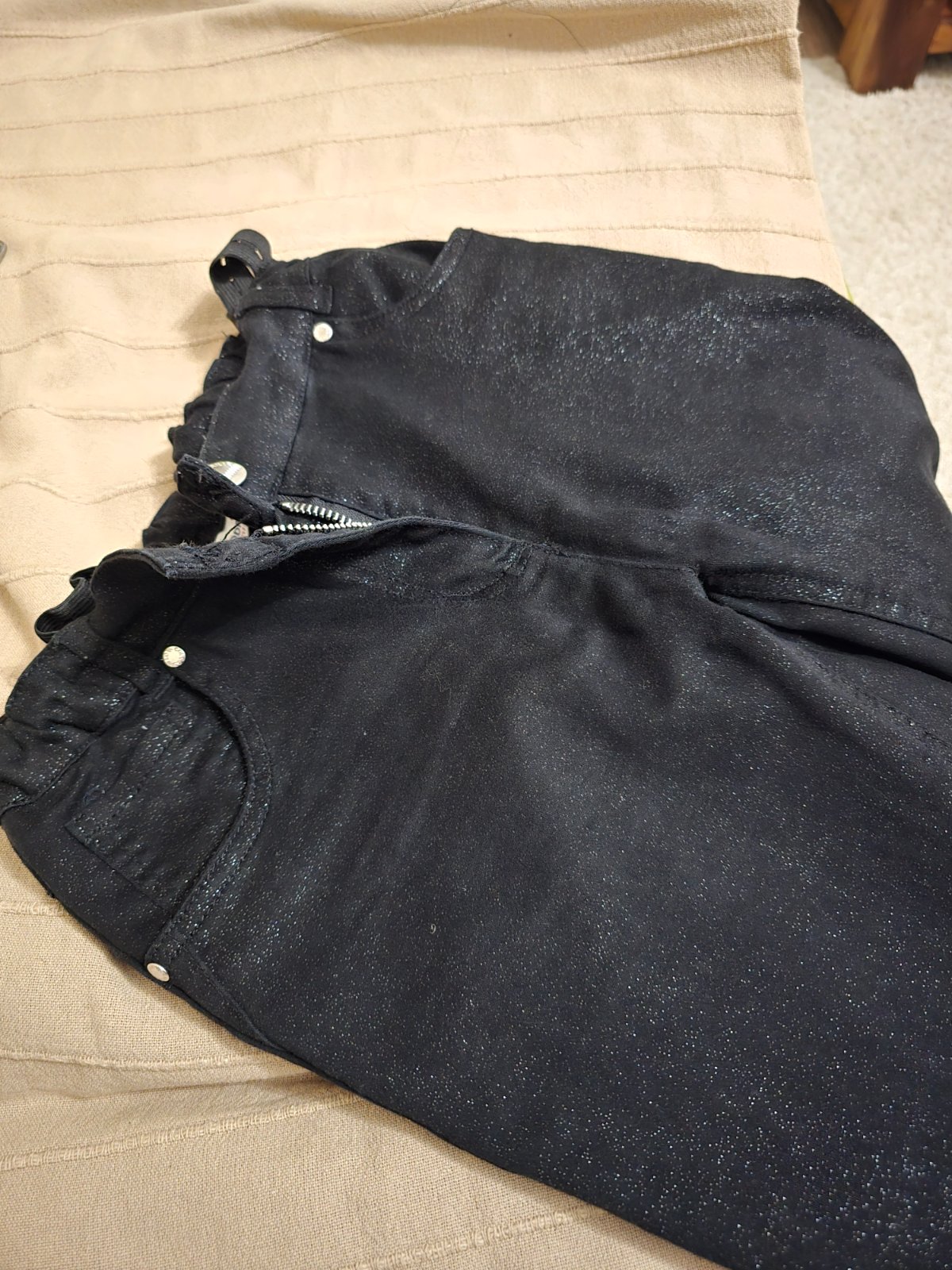 Krásne čierne nohavice s trblietkami, veľmi málo nosené, super stav, pás sa dá regulovať
