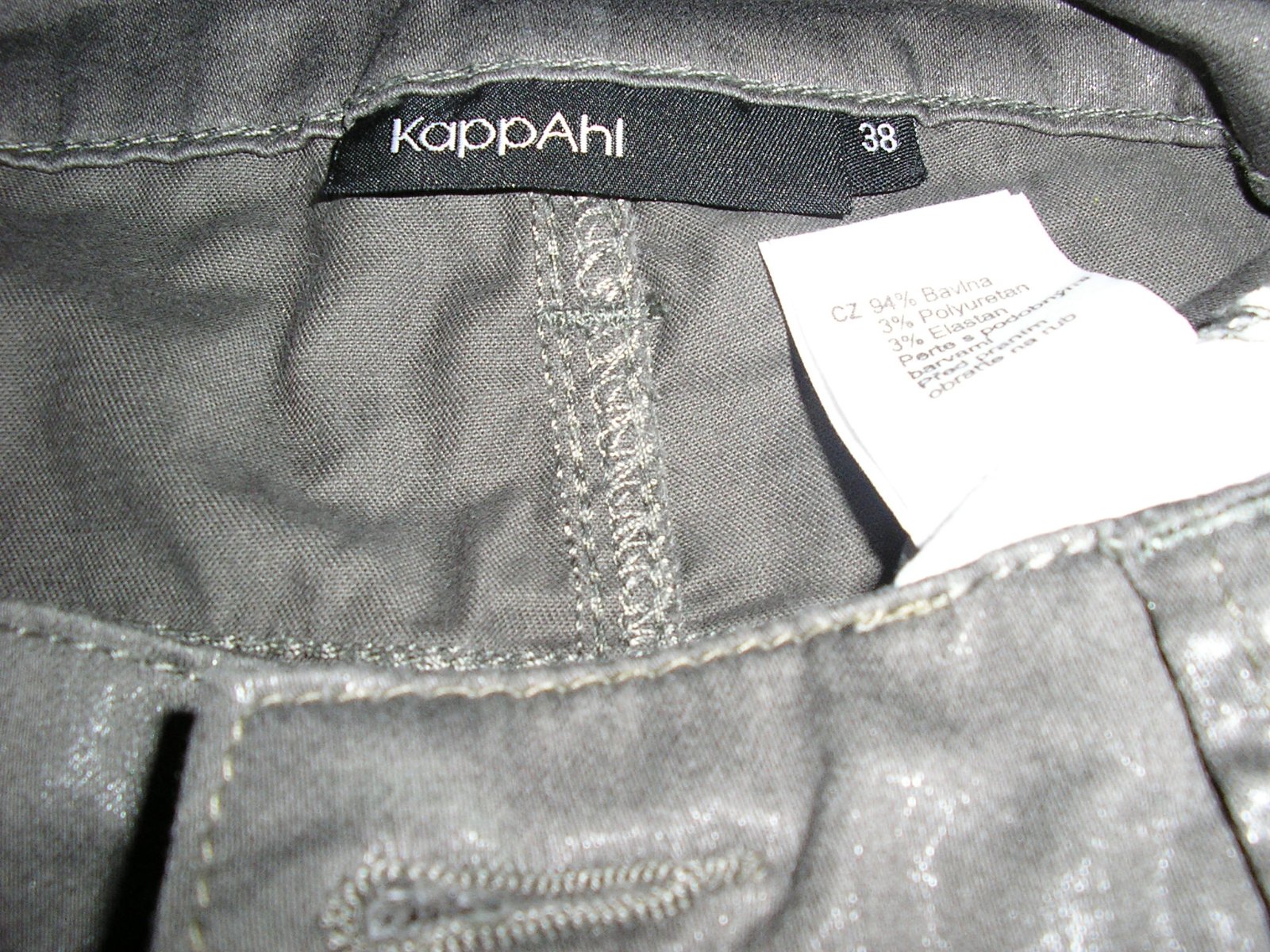 Mierne lesklý vzhľad. Rovný pás so zapínaním na zips + kovový gombík. Mierne zúžený strih - na spodku so zipsami, s 5 vreckami.