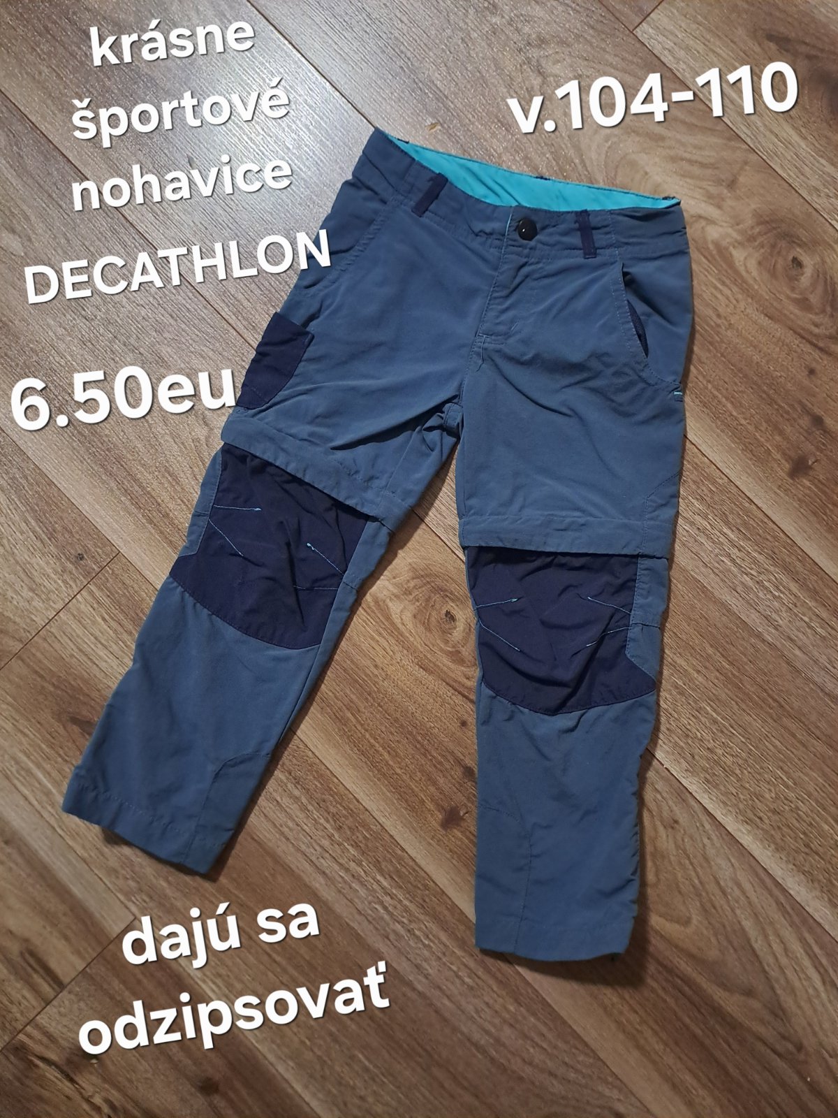 Predám krásne jednovrstvové nohavice značky Quechua kupované v Decathlone. Veľkosť je písaná 104 (96-102 cm), ale sedia na veľkosť 98. Riaďte sa prosím rozmermi. Mali sme ich iba pár krát, sú v krá...