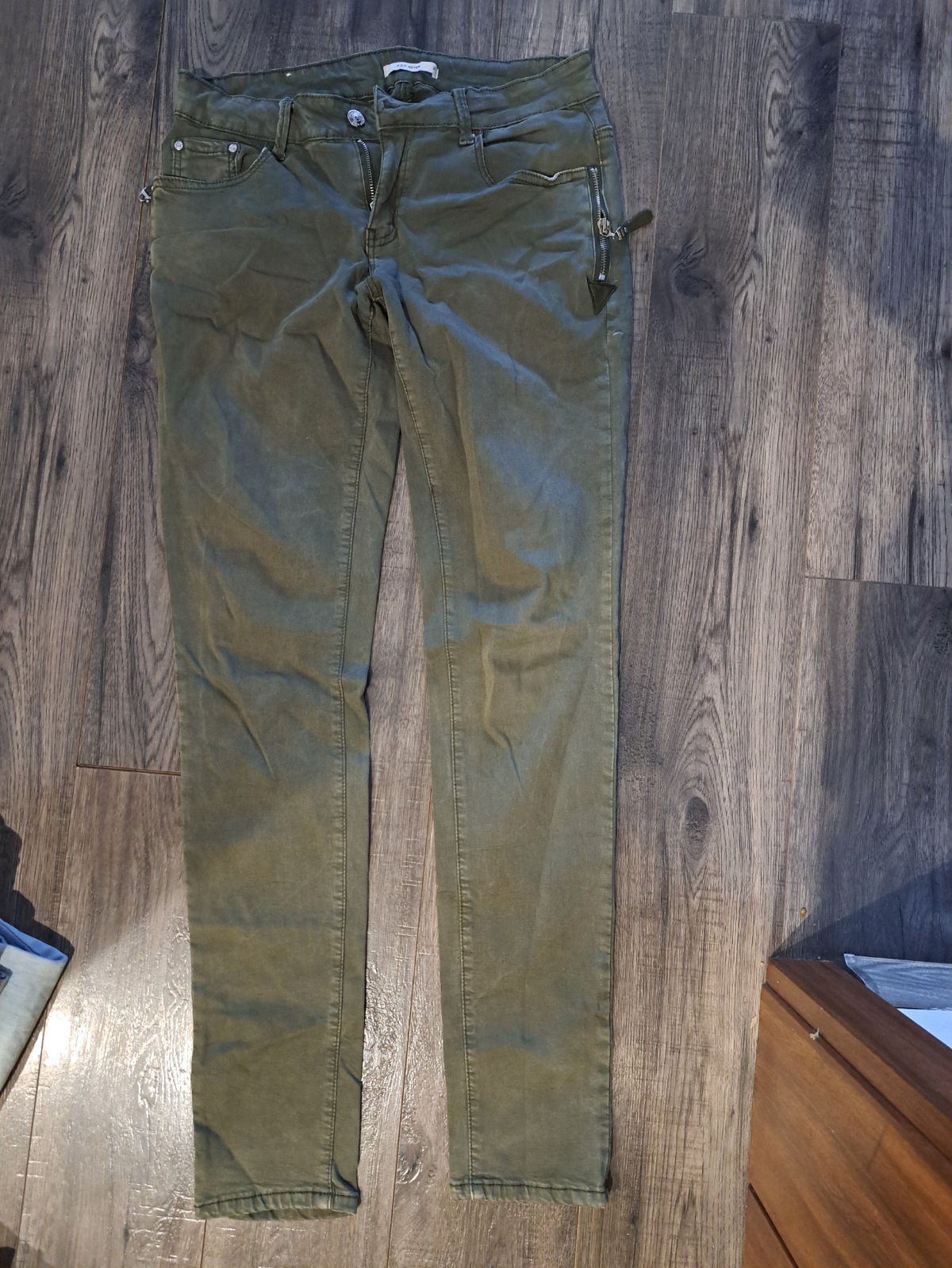 Predám rifle značky Tally Weijl, veľkosť 32. Boli len párkrát oblečené. Farba je taká olivovo zelená. Cena 5€+pošta.