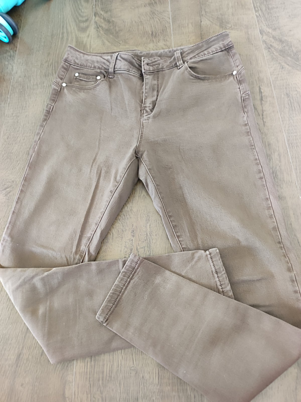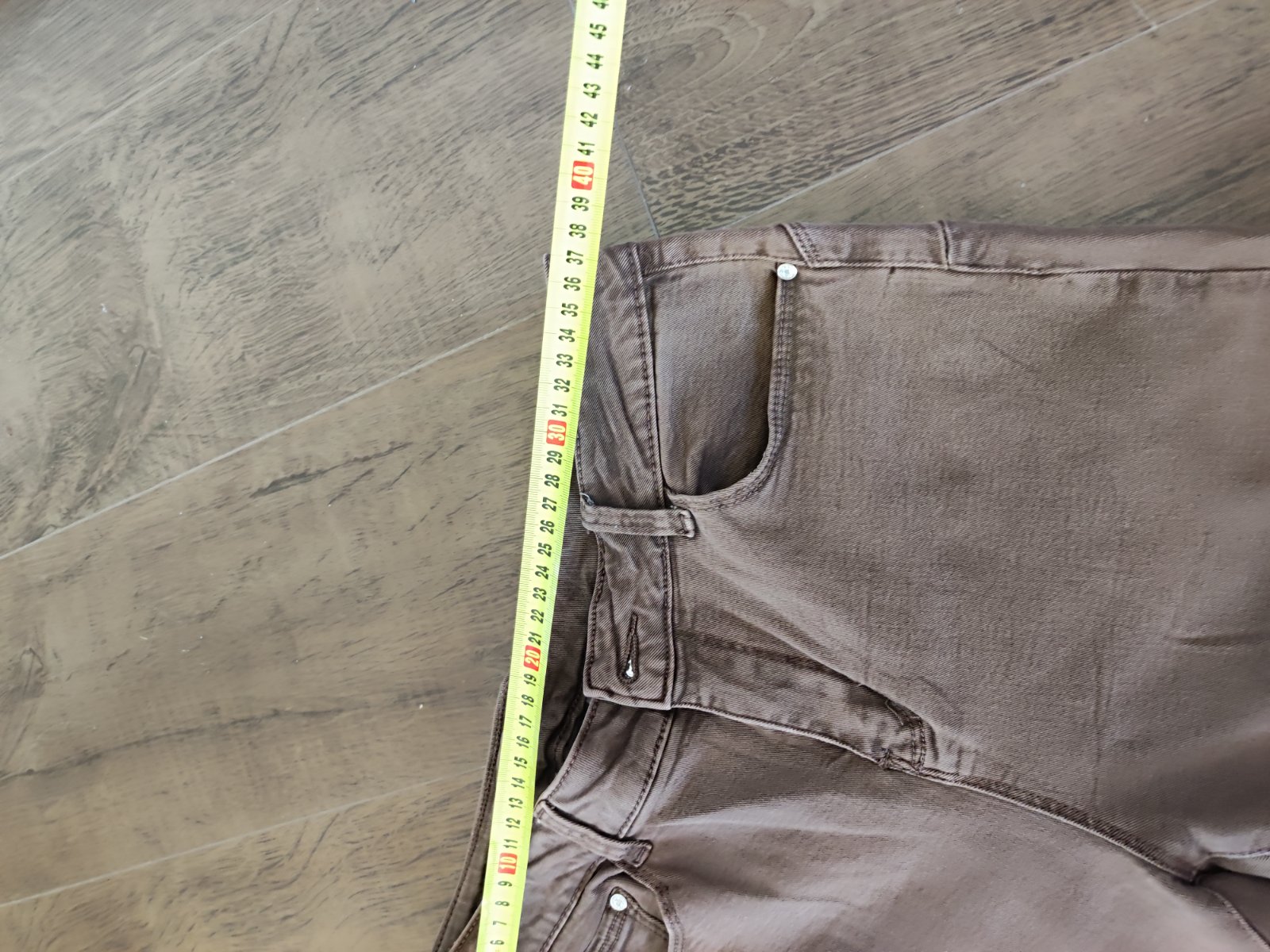 Ponúkam mäkké elastické rifle, pekná čoko farba vzaté 2×....v top stave... udáva sa veľkosť xl ale sedia na L.... miery vo fote...Made in Italy