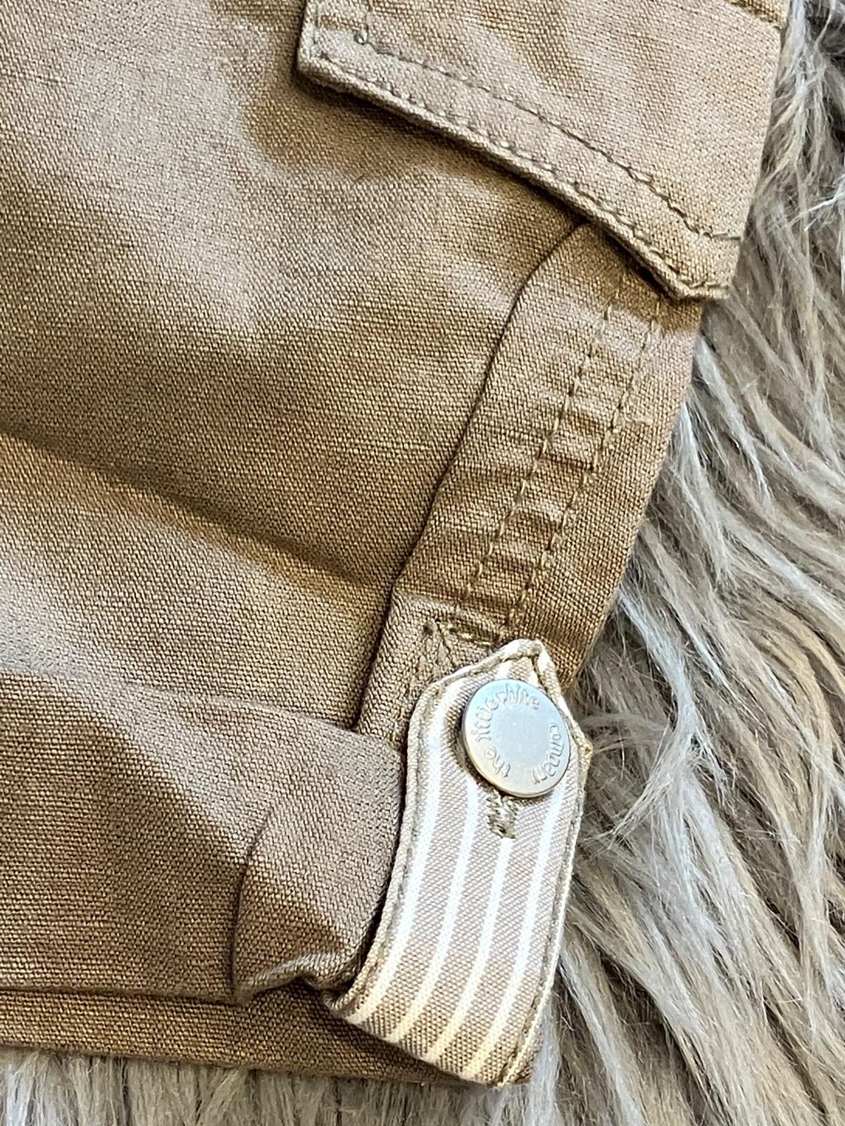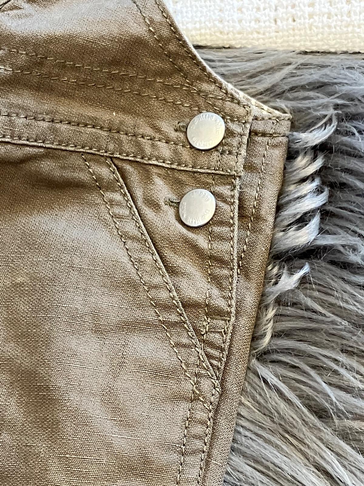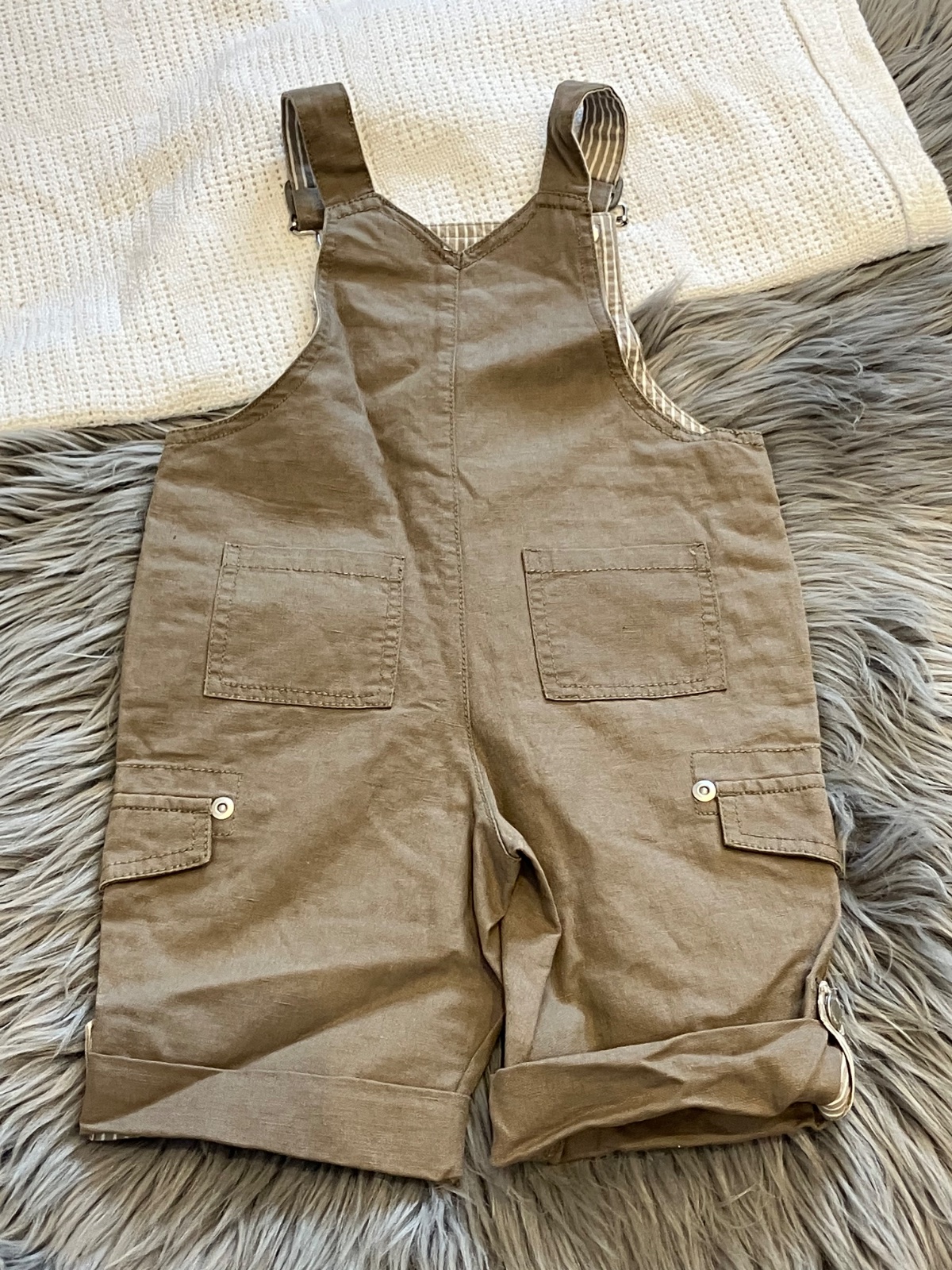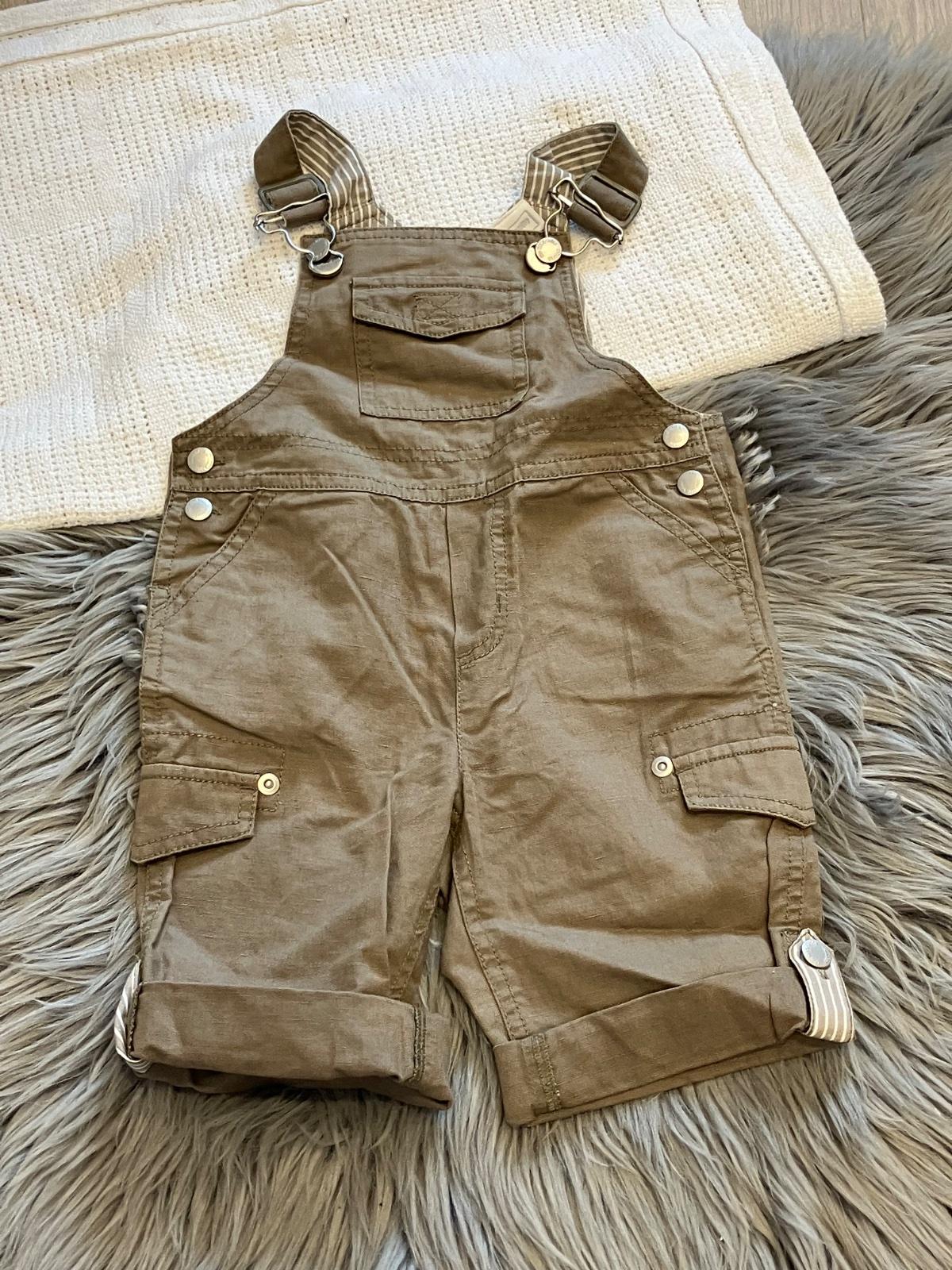Chlapčenské nohavice na traky, tenké, málo elastické, farba tmavohnedá, dve bočné a dve zadné vrecká.
