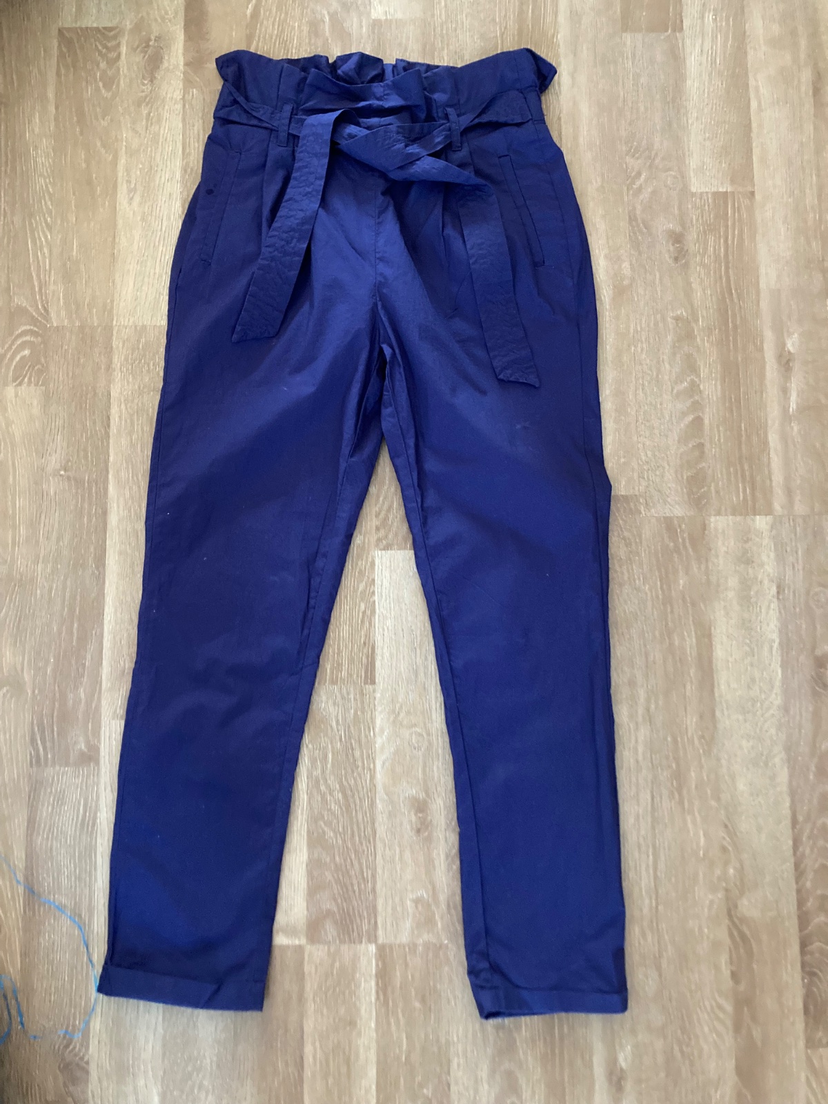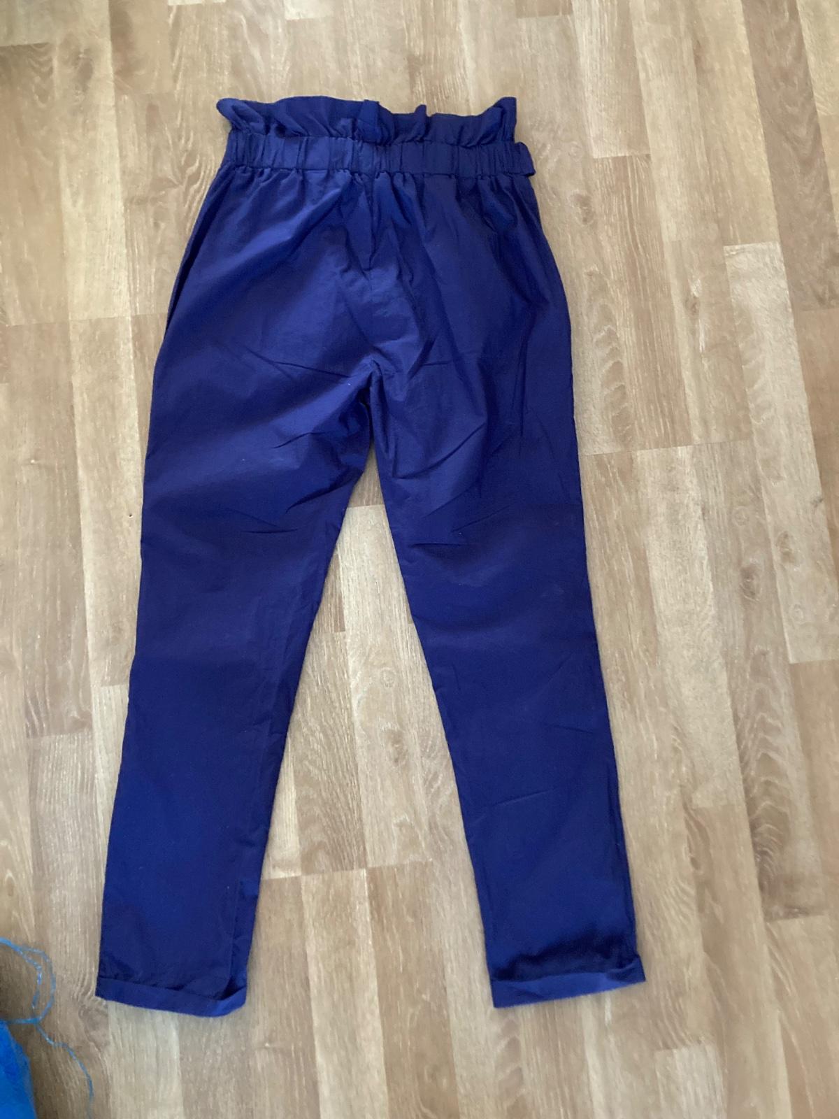 Krásne modré nohavice s čiernym lampas prúžkom zo zamatu po bokoch, zadné funkčné vrecká, pekne sedia na postave:) Ako nové, rýchlo sme vyrástli.