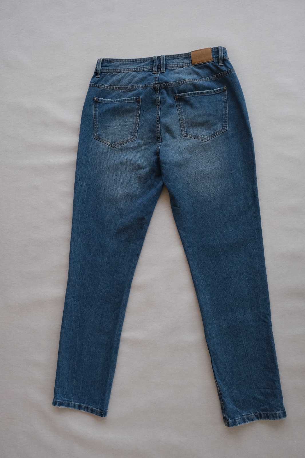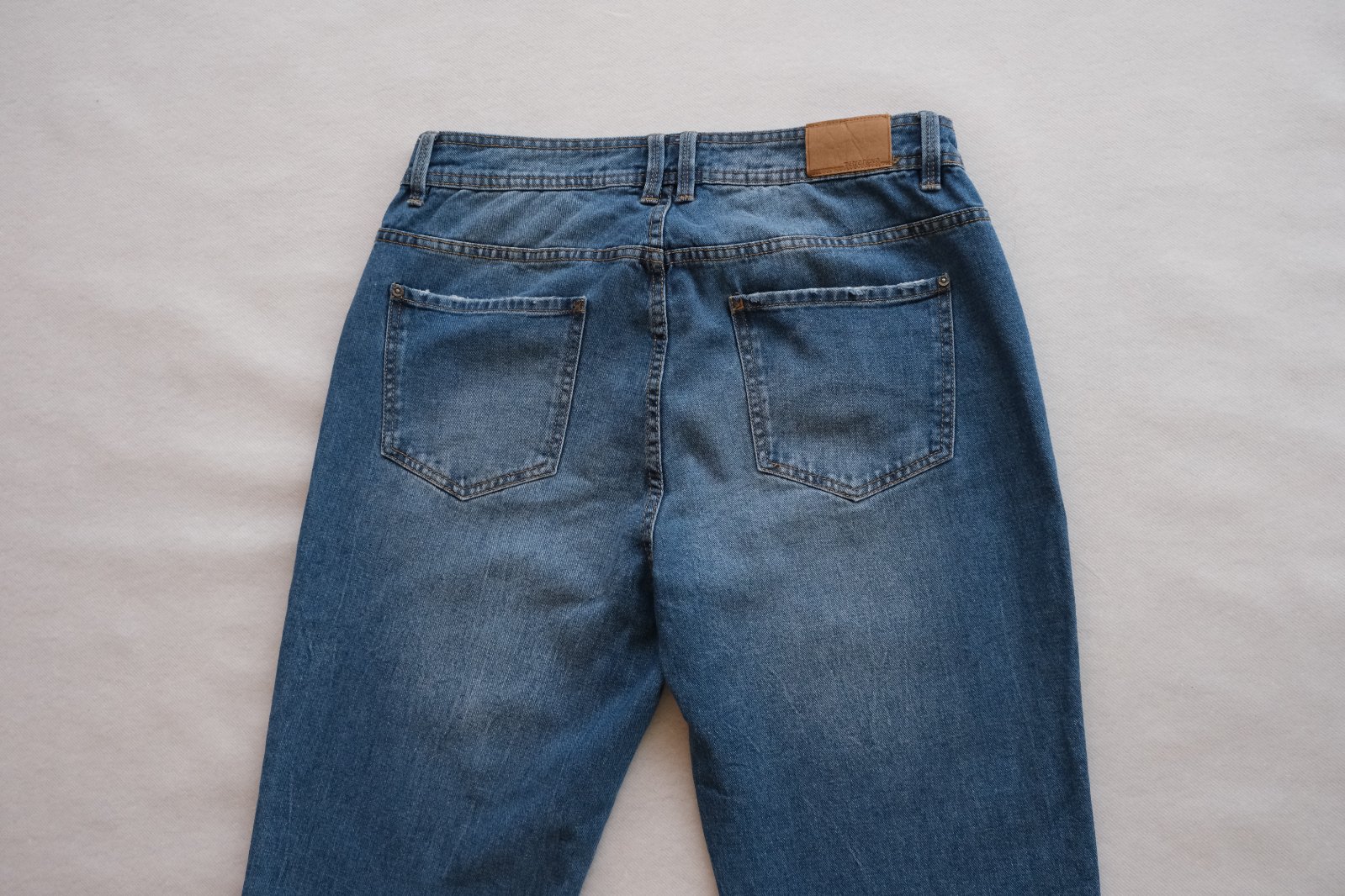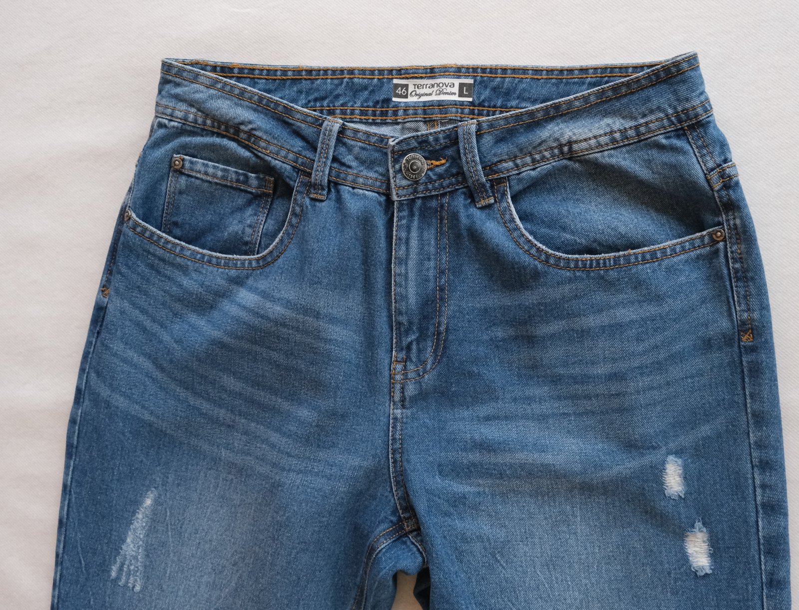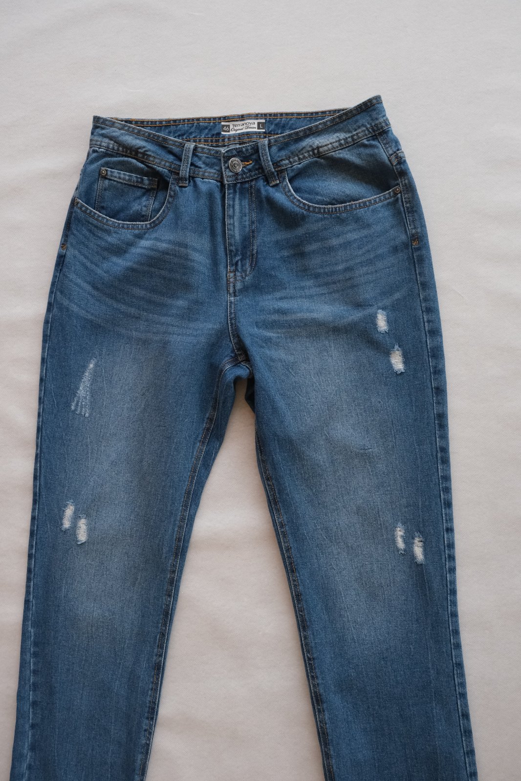 Popis tovaru: tenké letné jeden krát oblečene a prane rifle, vydratými efektami vpredu, dole, okolo vačkov , nemajú žiadne vady ani poškodenia poslúžia na bežné nosenie,