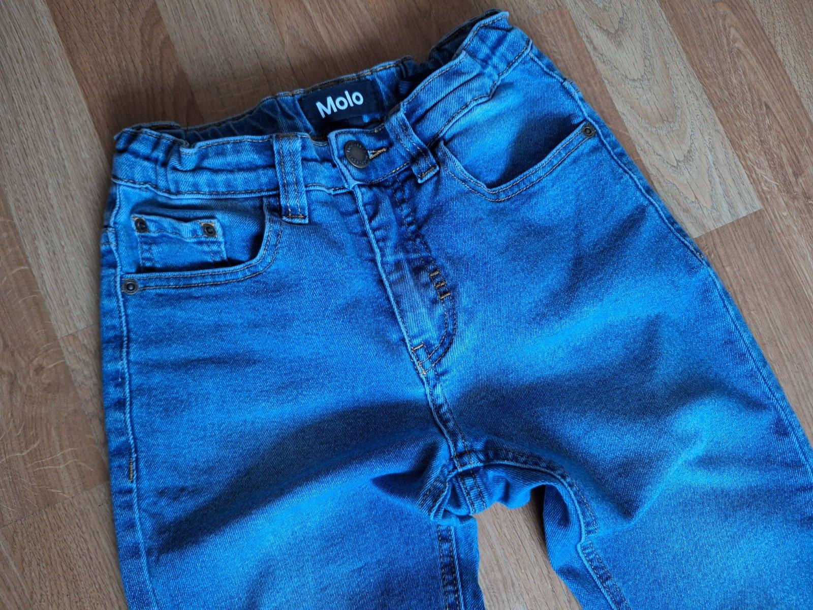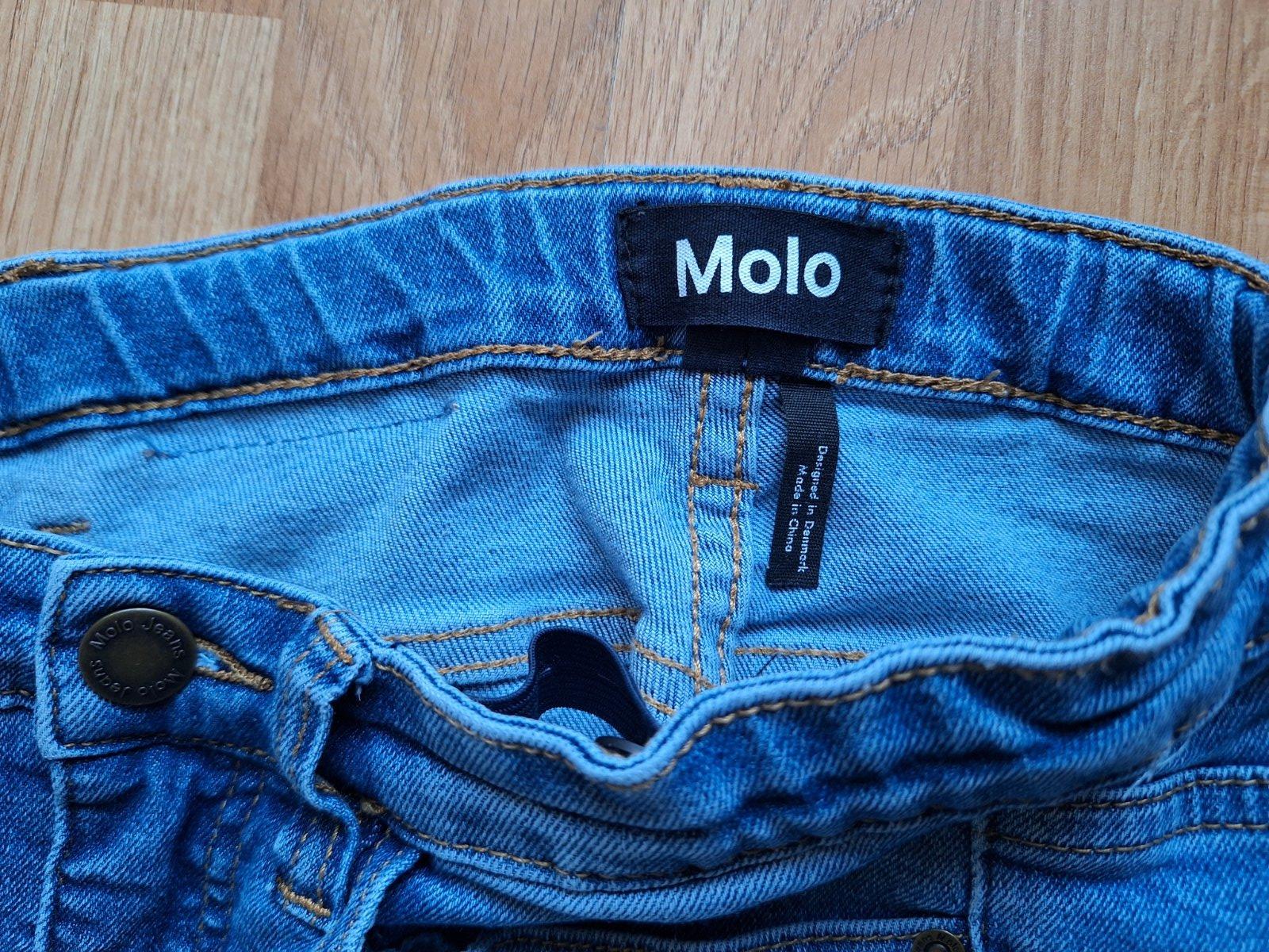 Zachovalé rifle nosené 1 sezónu. Prémiová značka MOLO. Slim strih. Veľkosť je odstrihnutá, ale je to cca 140-146, premerajte. V páse na bokoch gumička s gombíkom na pritiahnutie.