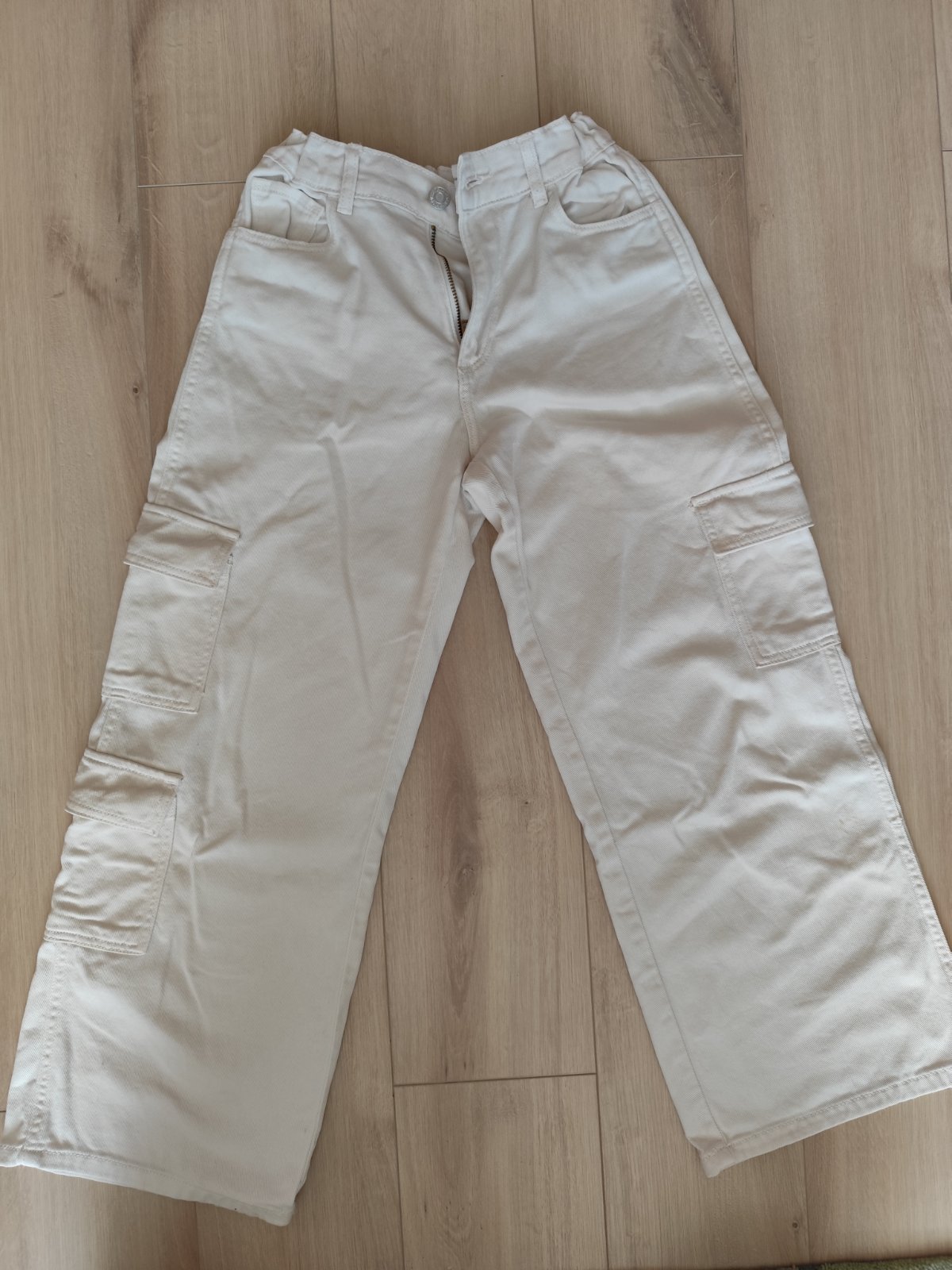 dievčenské nohavice, strečové, bedrové, málo nosené, veľkosť 26, to je asi tak 140 -146, vonkajšia dĺžka 91 cm, vnútorná 71 cm, šírka 30 cm X 2, v bokoch 40 cm X 2.