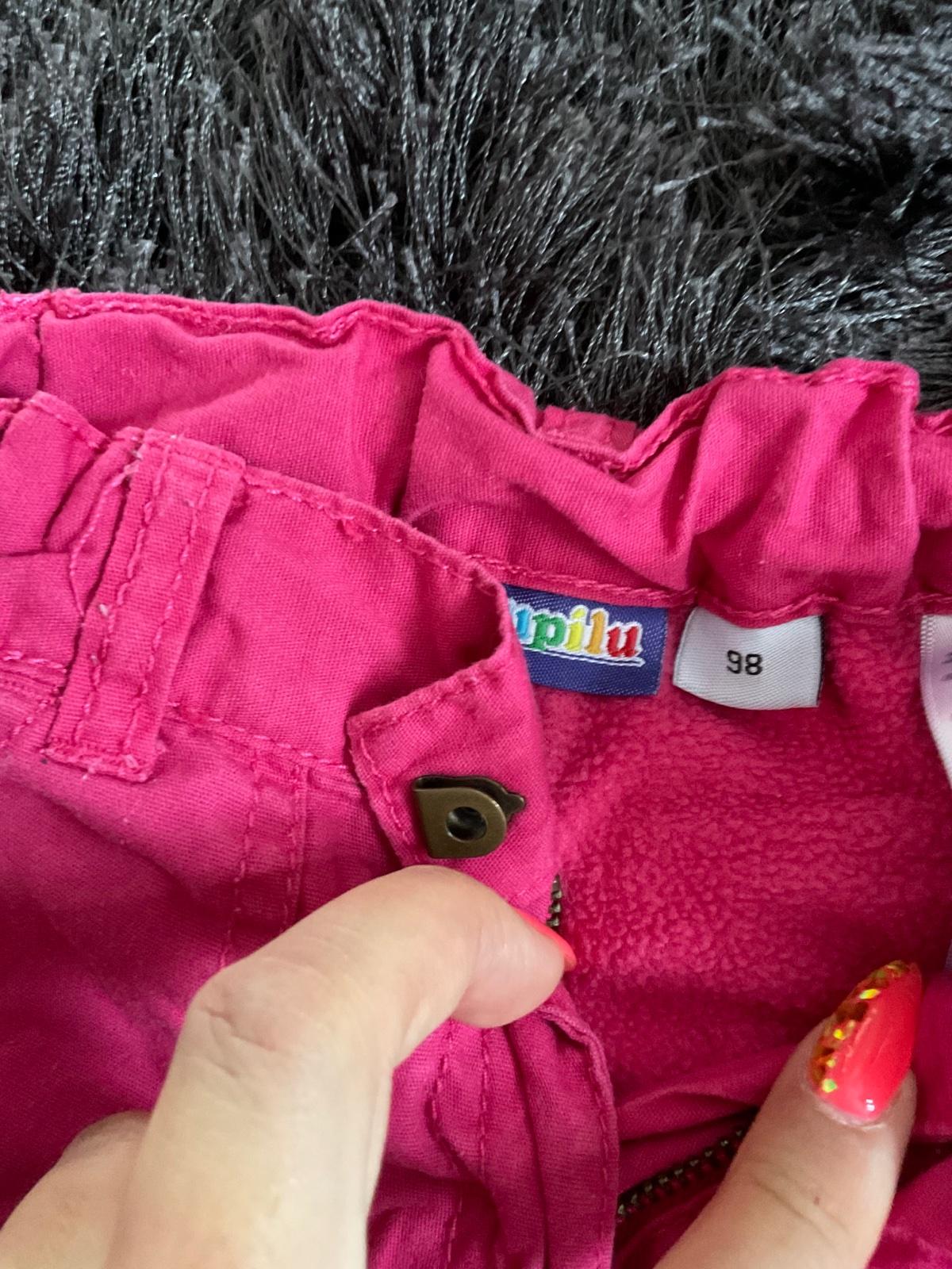 Bavlnenou látkou zateplené nohavice zn.lupilu, veľ.98, v peknom nosenom stave, majú len jeden fliačik na stehne (viď foto). Vnútorná dĺžka od rozkroku je 37cm. Cena 2€.