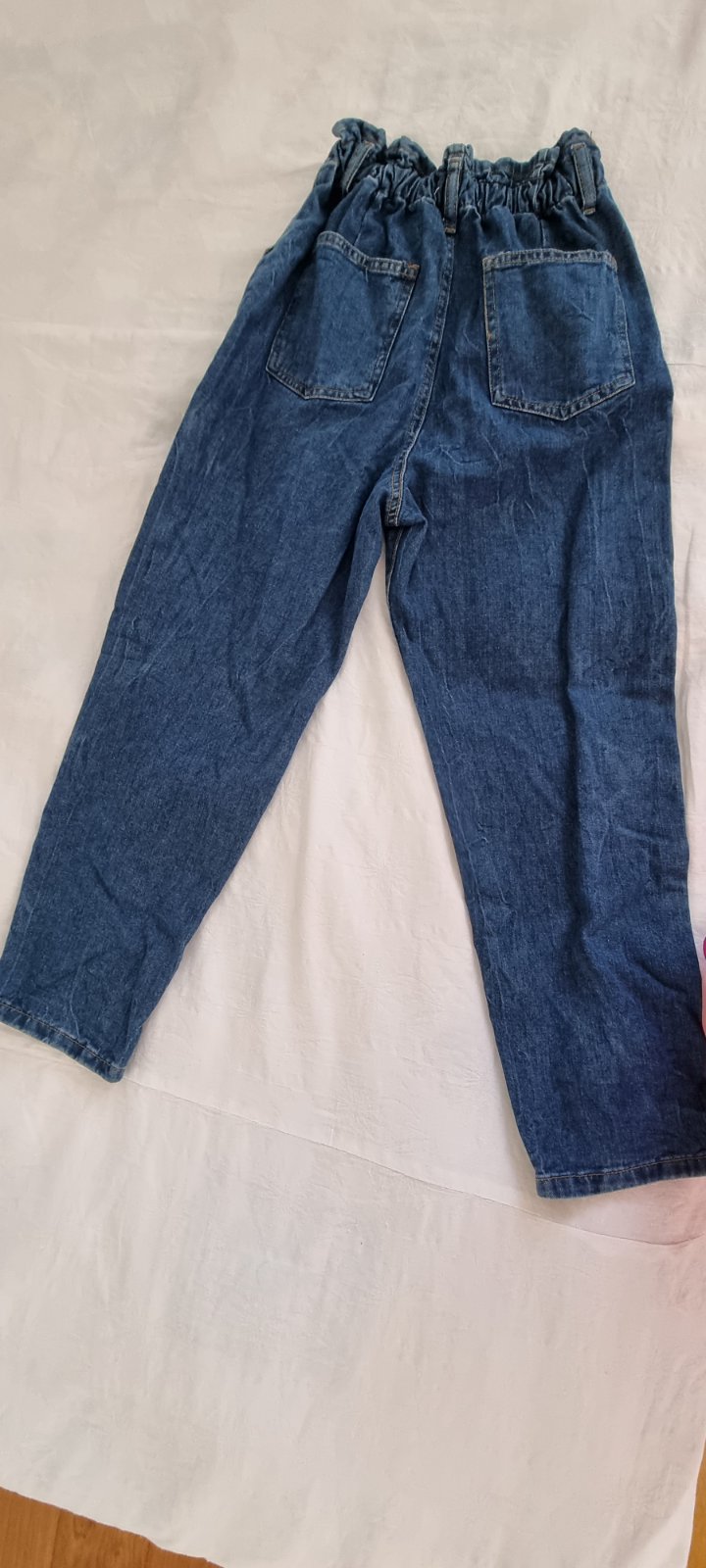Nové, nenosené dievčenské rifle, guma v páse. Vyšší pás, dĺžka nohavice od sedu 60 cm, viď foto.