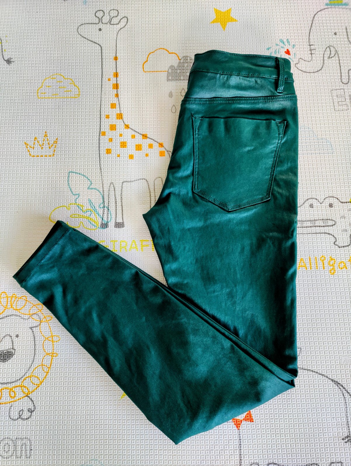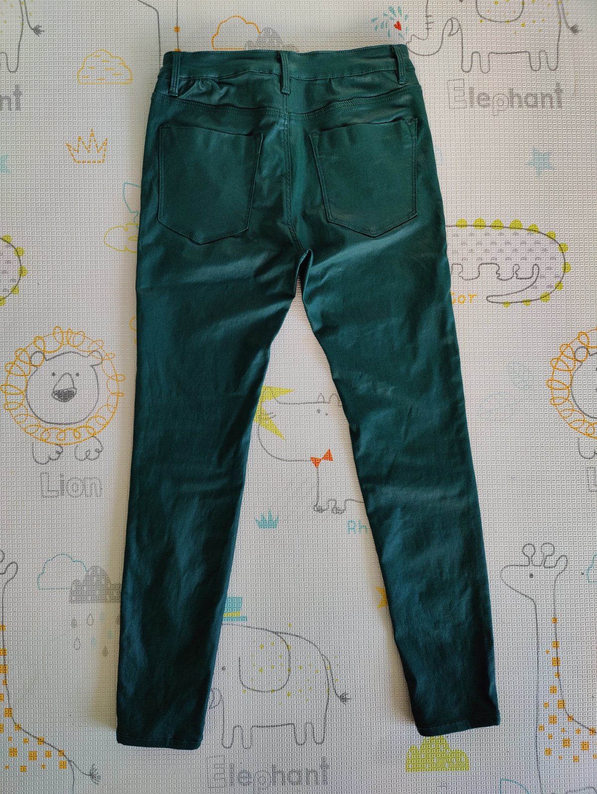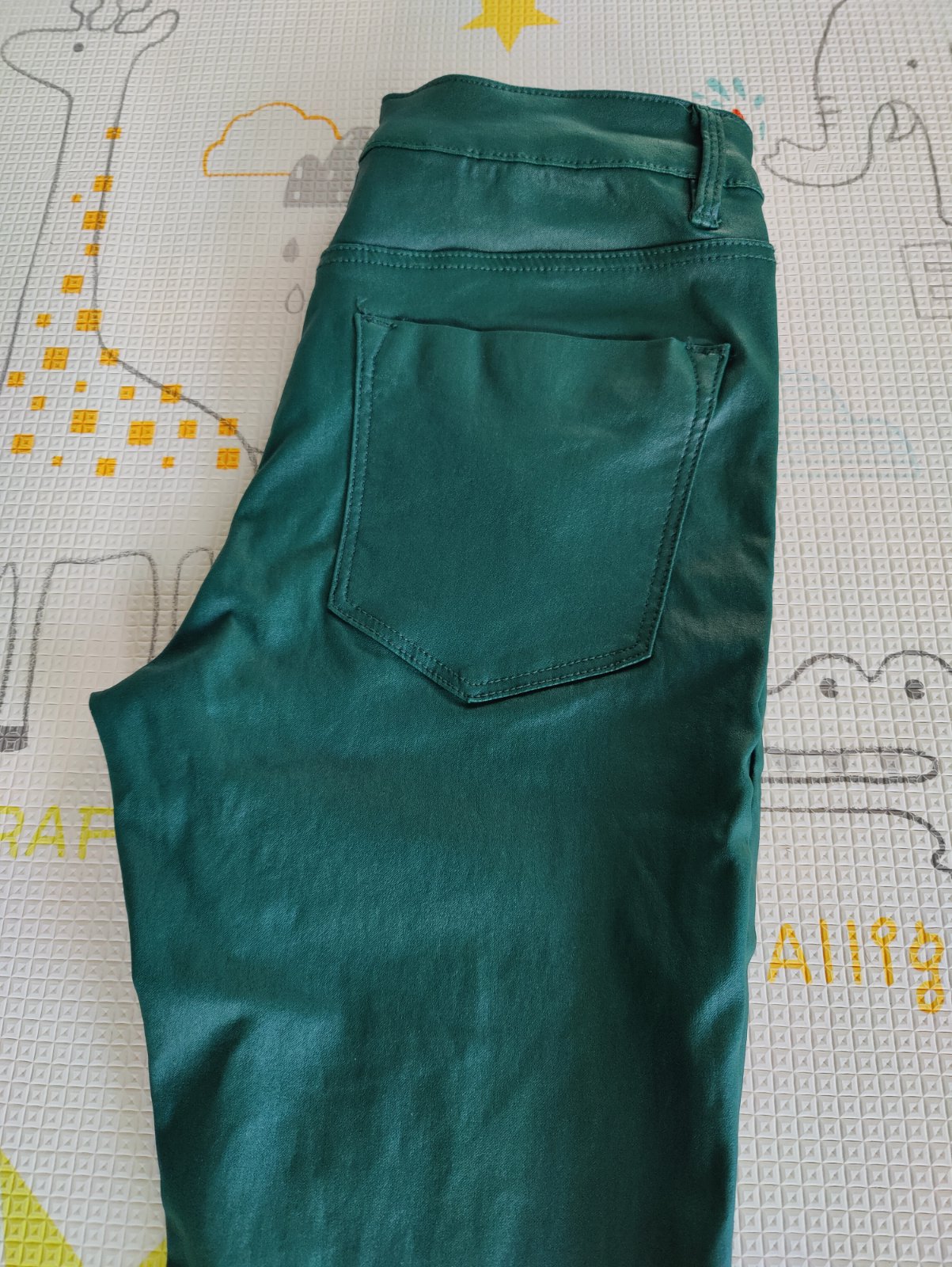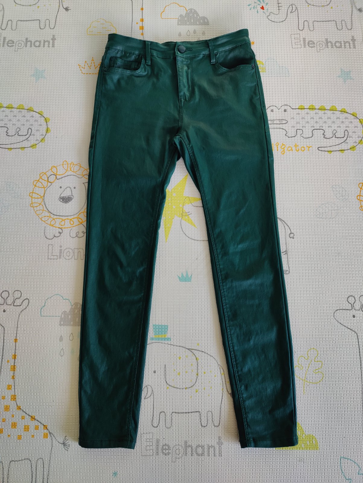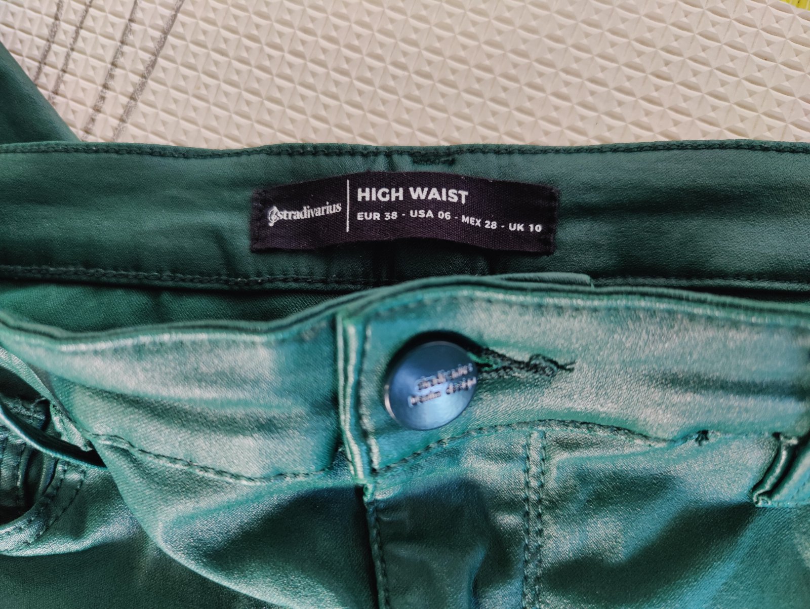Predám tmavozelené nohavice značky Stradivarius, veľ. 38. Nohavice sú skinny fit, high waist strihu a majú lesklý akoby kožený vzhľad. Krásne sedia na postave, aj sú pohodlné, akurát pre mňa sú tak o 4-5 cm kratšie ako mi je komfortné. Som vysoká 175 cm a preferujem štandardnú dĺžku. Top stav, oblečené boli iba raz.