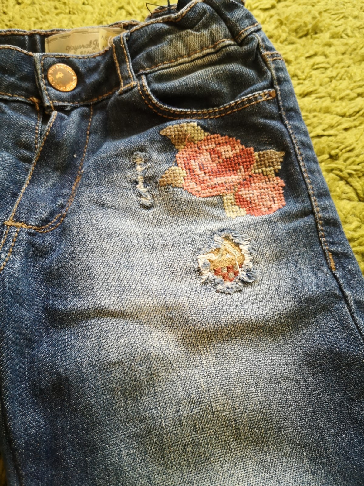 Krasne stylove dzinsy mayoral, elasticke, prisposobia sa. Pas nastavitelny, pri nizsej postave sedia aj na 110.