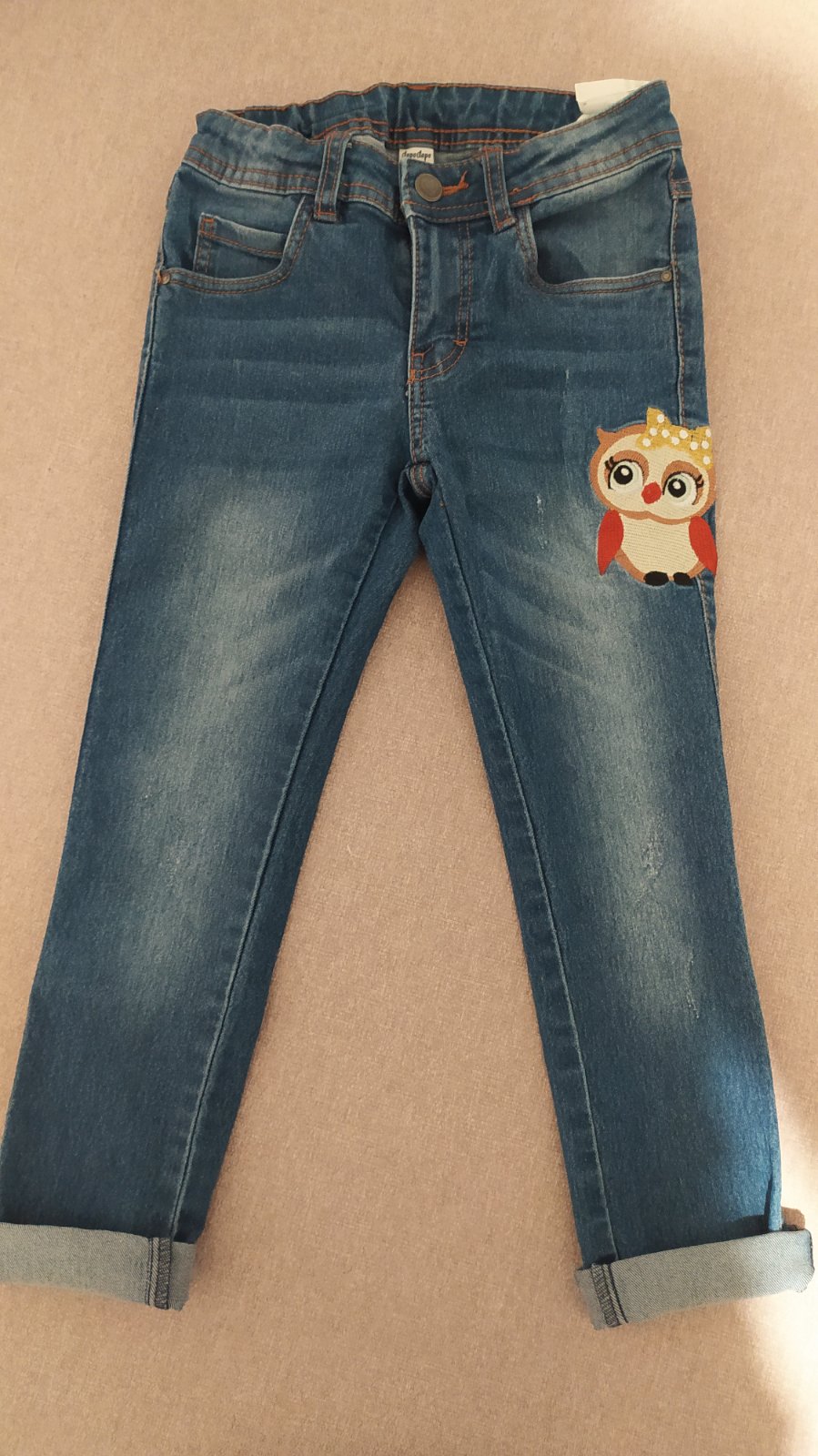 2 Dievčenské elastické rifle zn. Takko veľ. 116. V predu majú vyšívanú aplikáciu. Málo nosené, bez poškodení, na gombík a zips, v páse sa dajú prispôsobiť gumičkou. Pás 26cm,dlzka vonkajšia 67cm, v...