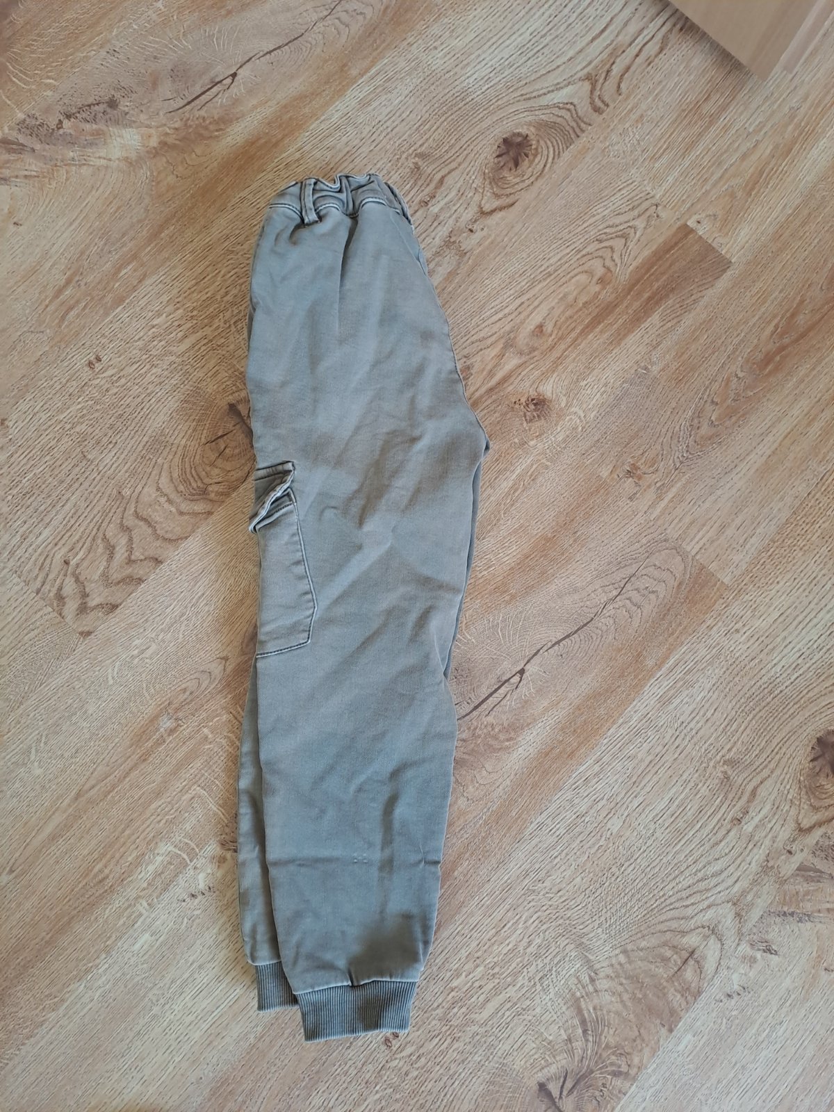 Sive nohavice sportove, 128 nove, nenosene. Lososove nohavice oblecene 1-2x, 128. Cena spolu12€