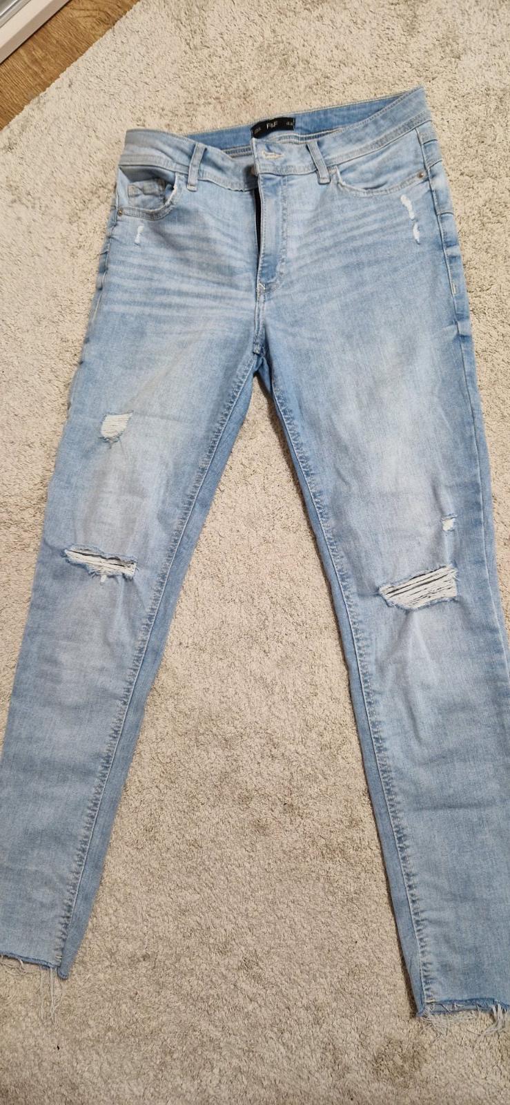 Štýlové modré rifle s dierami vo veľkosti 38 zn. F&F ,jemne elastické. V prípade záujmu premeriam. *Pozrite si celý bazár,pri kúpe viac veci dávam zľavu*