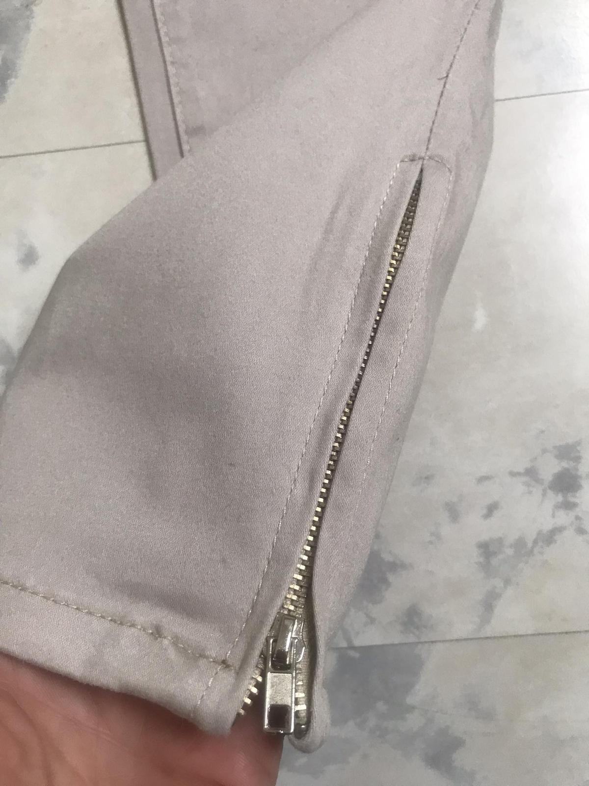 dlžka = 99 cm,boky 45 - 46 cm x 2 cm,obsahujú elastan,krásne sedia na postave,ukončené trendovými zipsami na bokoch,spodok dole na nohavici = 14,5 cm x 2