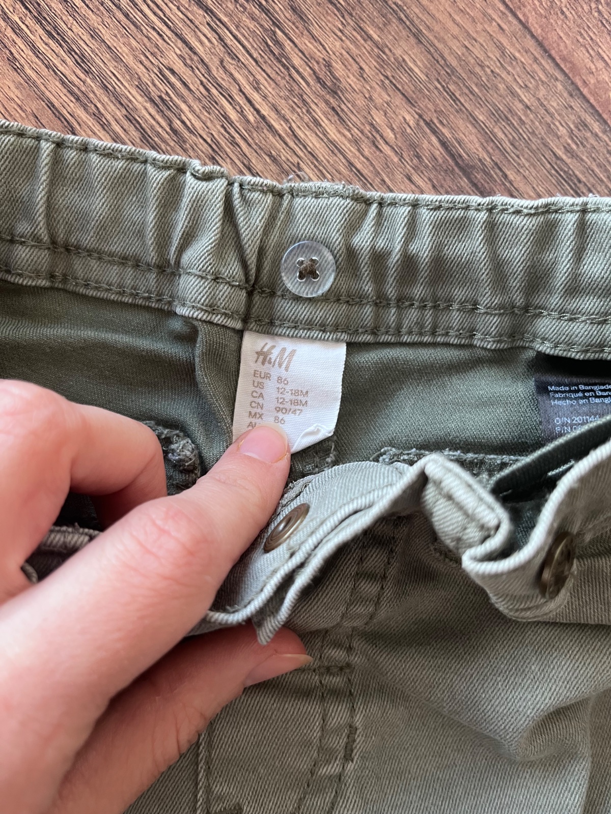 nohavice H&M, vo výbornom stave, nastaviteľné gombíkom na kraťasovú dĺžku, s vreckami, v páse elastické, veľ. 92 (1 1/2 - 2 roky)