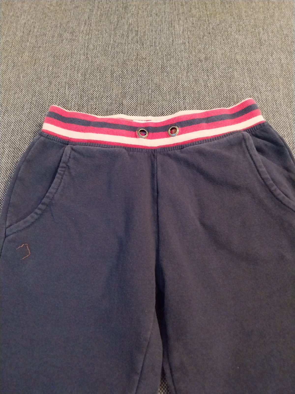 Predám tepláky, dobrý nosený stav, veľ.134/140, na modrých popraskaný ružový pásik - viď foto, modré, dl.81 cm, pás 2x29 cm, šedé, dl.81 cm, pás 2x30 cm, cena spolu 4€.
