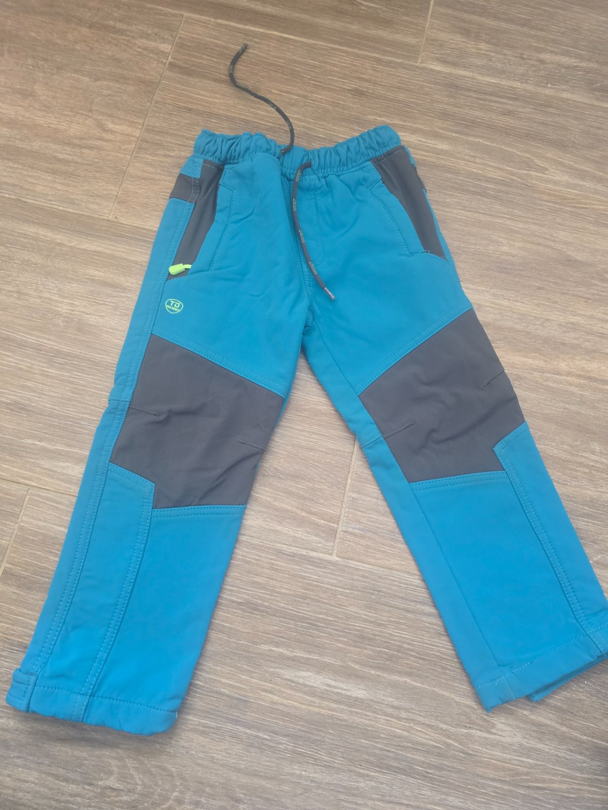 Nohavice na turistiku pre chlapca. Velkost 110-116. Vyborny lahucky material, farba tyrkysova modra, zadne 2 vrecka na suchy zips, 2 predne vrecka, 1 vreco bocne na zips.Oblecene parkrat na ture. T...