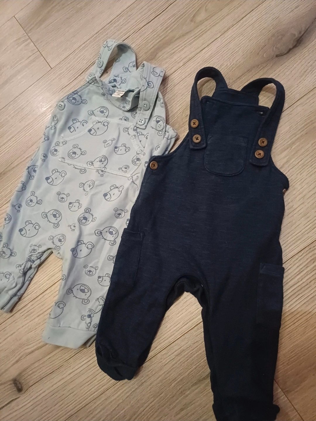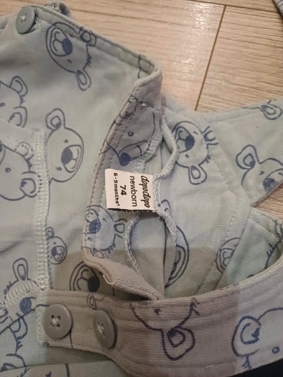 Výborný stav bez poškodenia, veľkosť 6-9 mesiacov, tenučký menčester 100% bavlna, regulovateľné traky, patentky medzi nohami, ROZMERY: dĺžka-55cm, od pása dole-34cm, šírka-2*27cm.