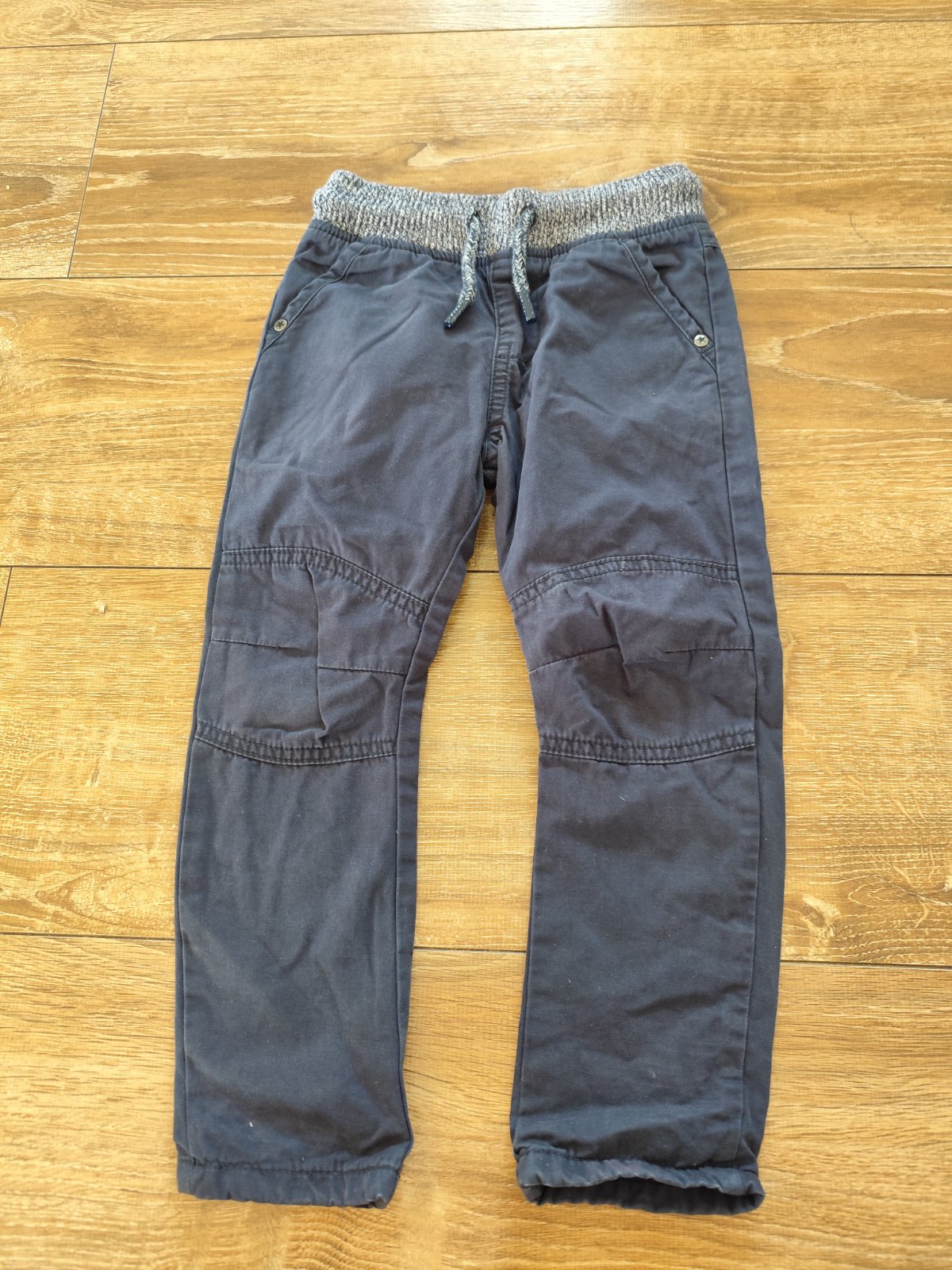 Tmavomodré vyteplene nohavice značky FaF veľkosti 98 v top stave