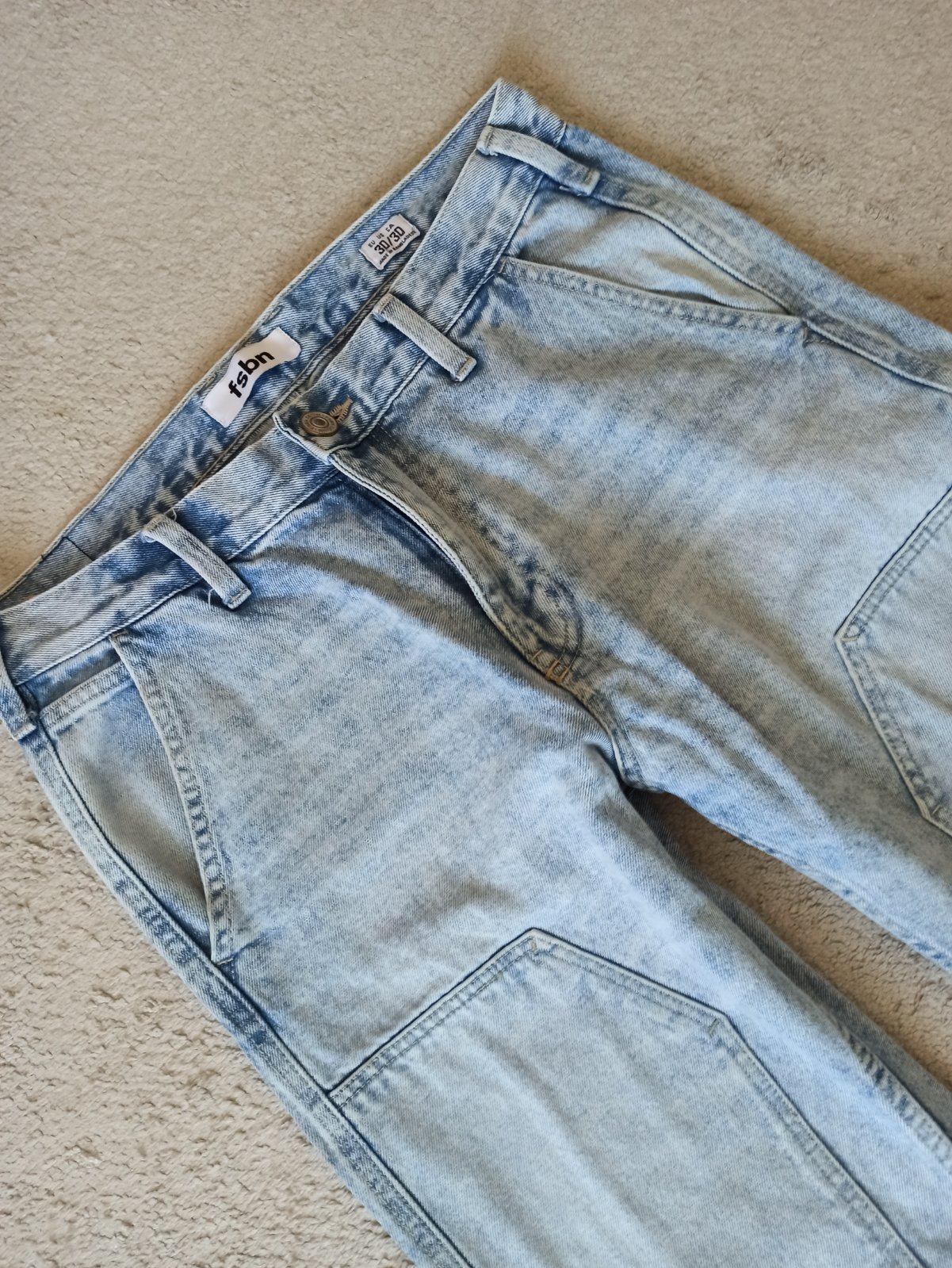 Moderné roztrhané rifle,100% stav.FSBN.Pás 86cm,dĺžka 100cm