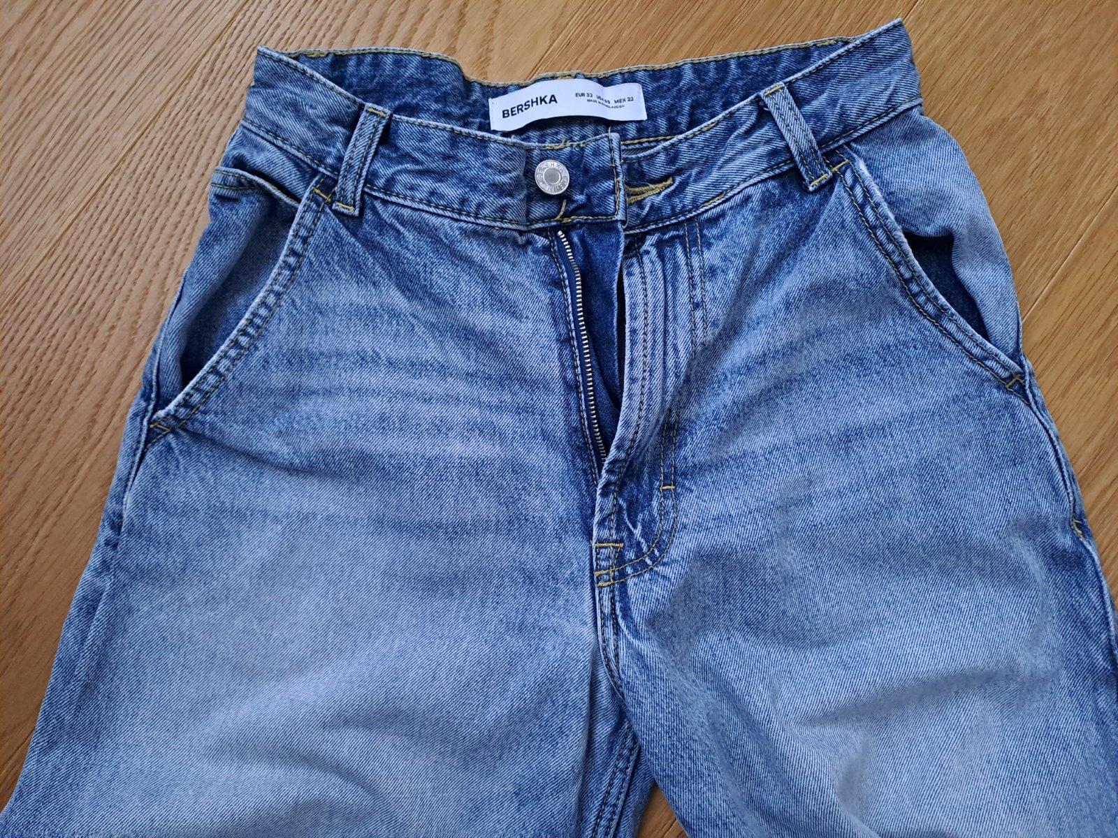 Dámske/detské rifle, zn. Bershka, veľ. EUR32, v dobrom stave sú tam malé fliačiky, viď foto, ktoré možno pôjdu praním dole. Cena prispôsobená. Dĺžka 95cm, šírka 2x34cm. Cena bez pošty.