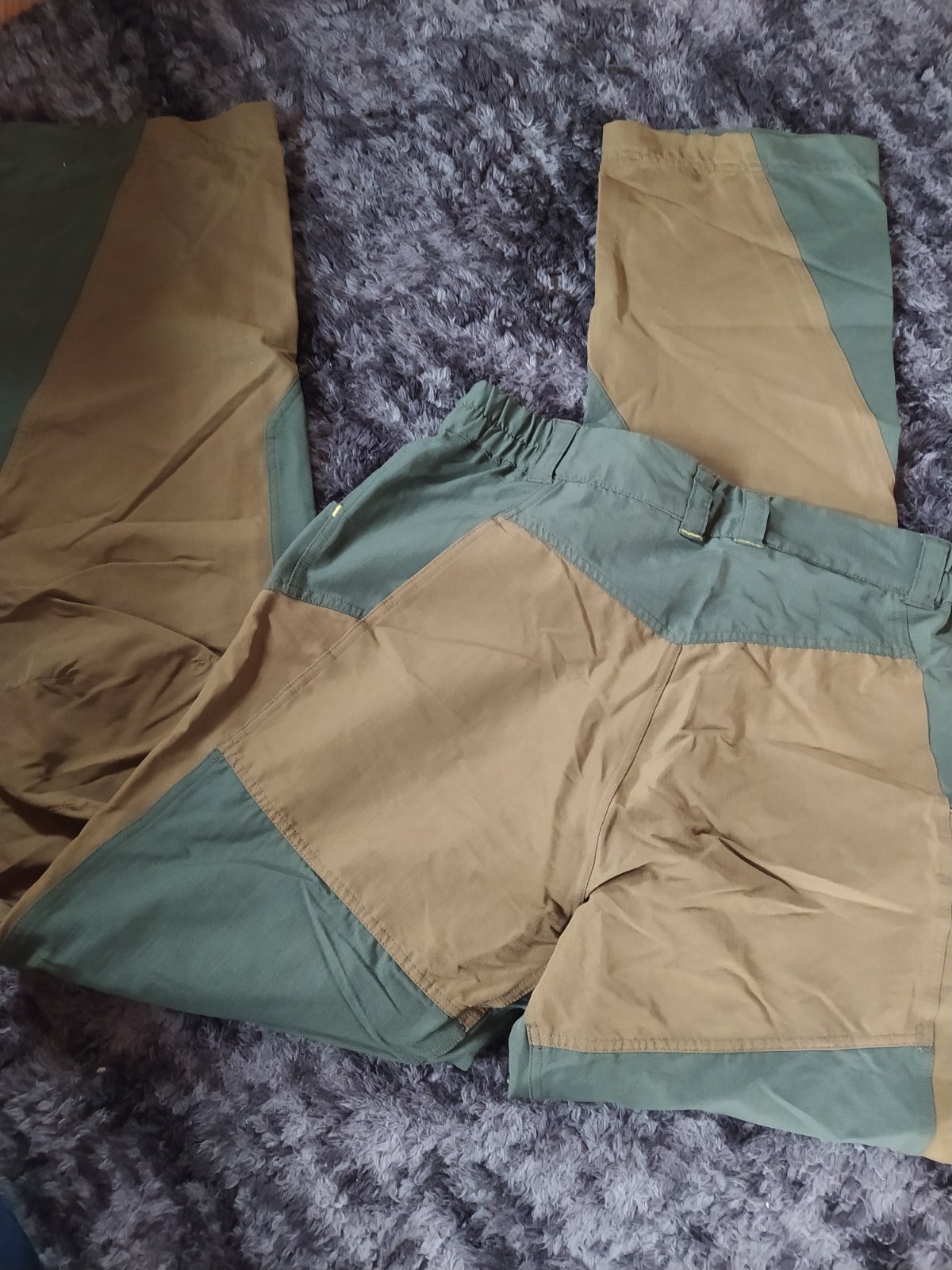 Pekne nohavice- nove, s visackami. Su elasticke. Velkost je uvedena ako EUR/DE 52; FR 44. Rozmery: celkova dlzka: 113cm, dlzka nohavice od rozkroku: 78cm, sirka v pase: 47cm (v pase maju snurku na ...