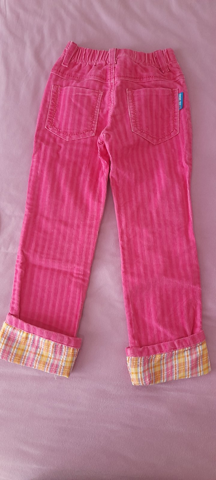 Predám tenké ružové nohavice, dĺžka 64cm, šírka 24cm, druhe nohavice dĺžka 65cm, šírka 25cm, značka h m, bavlnenné, dá sa regulovať pás,