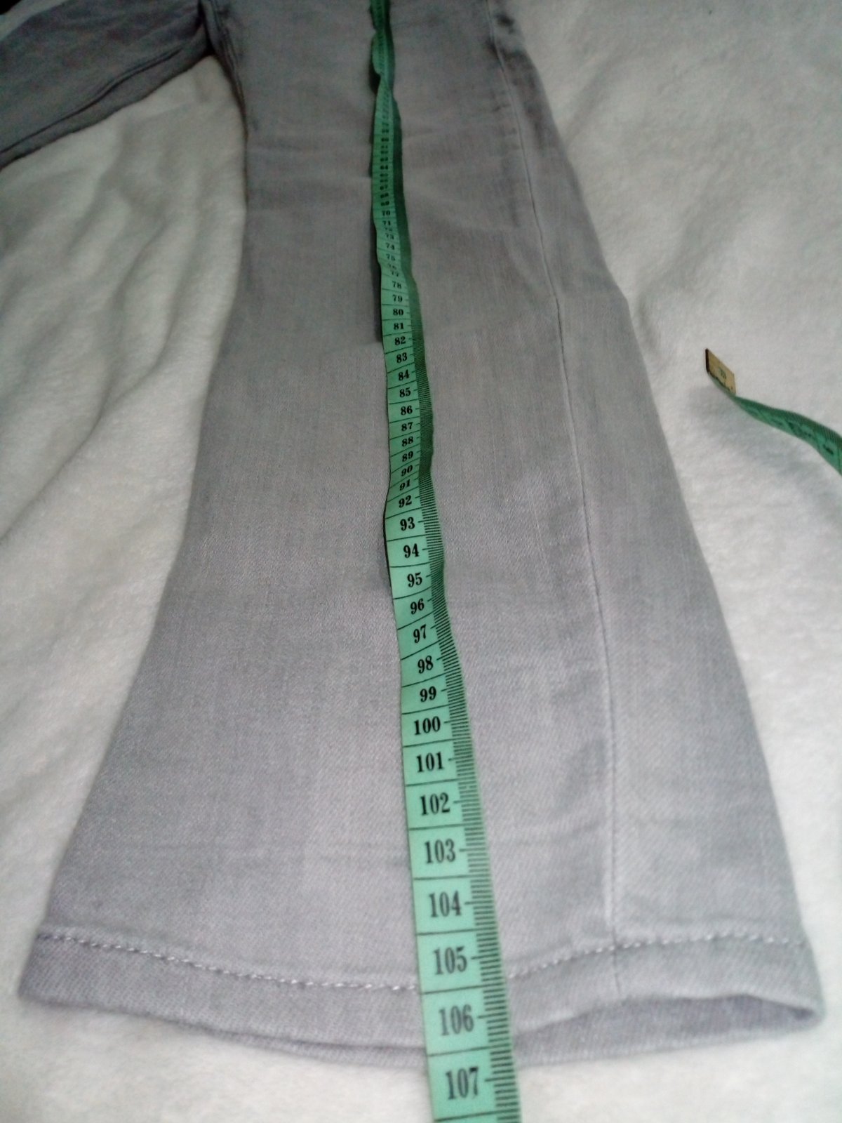 Zachovalé svetlo sivomodre rifle bez poškodení, žijúceho strihu, dlzka 100cm, šírka 35cm,