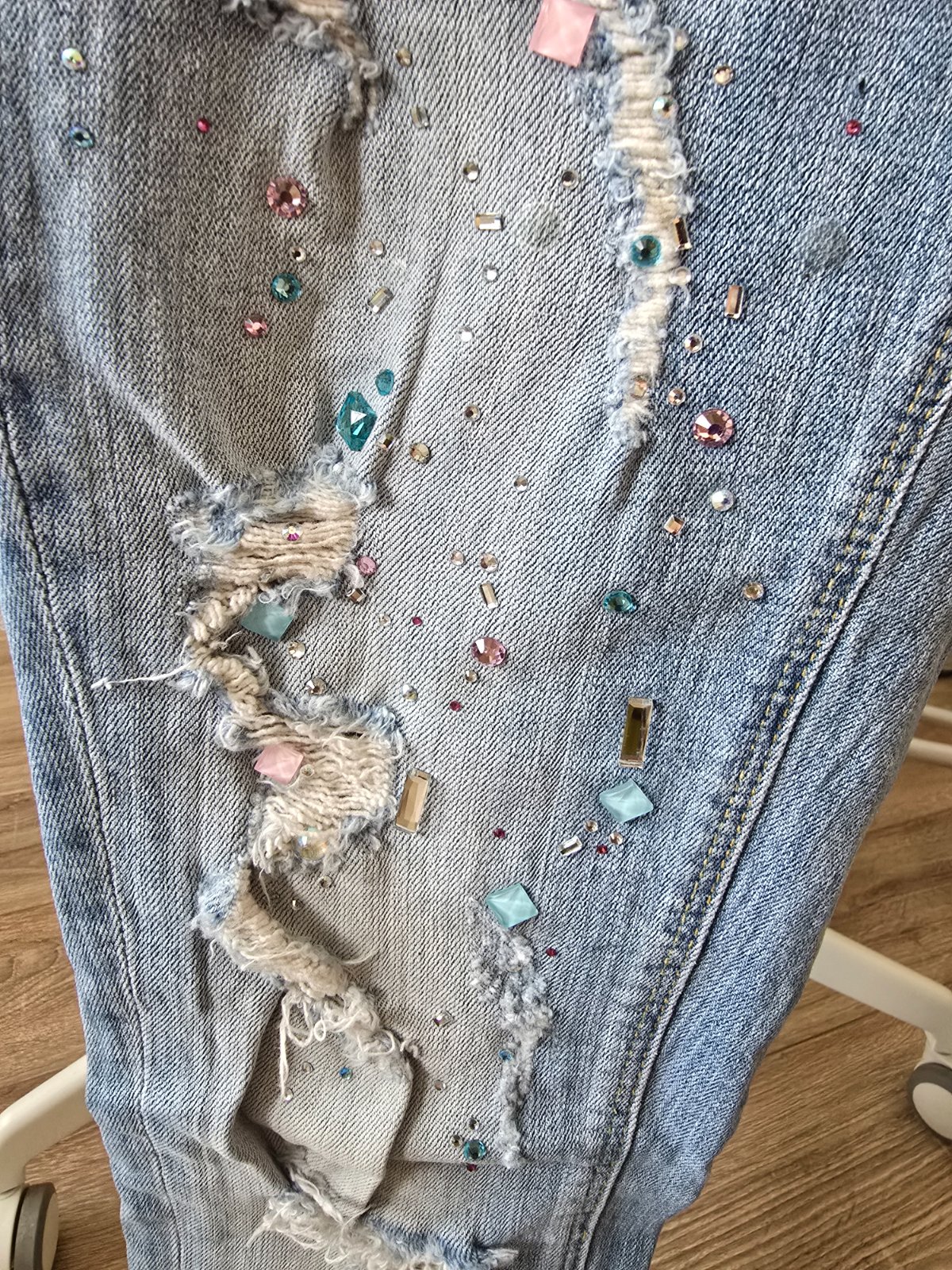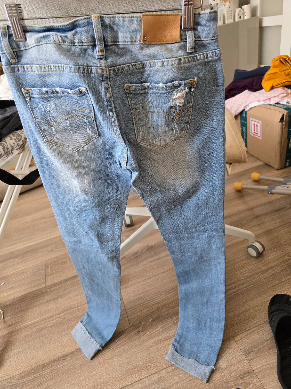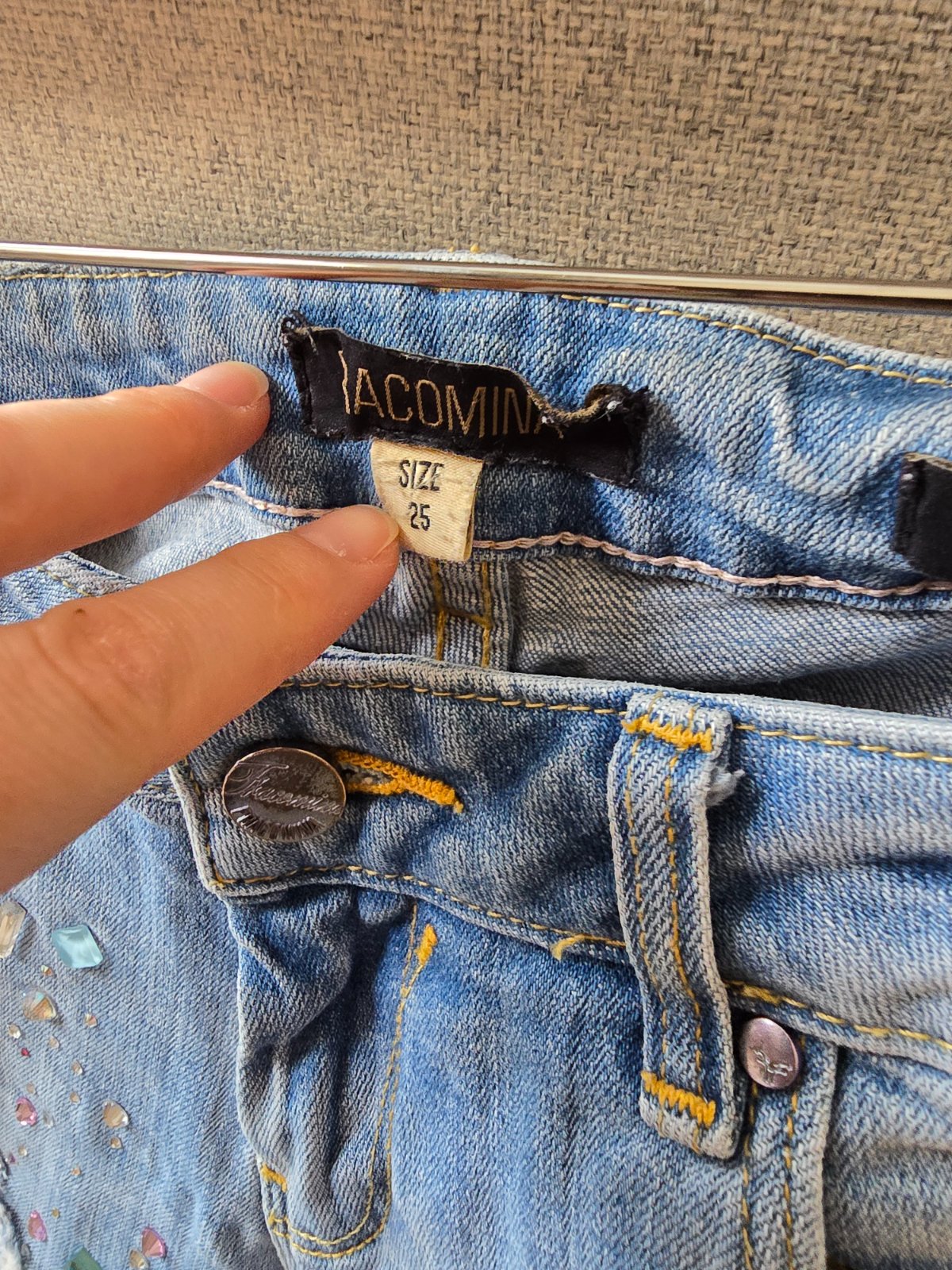 Predám perfektne tmavomodre rifliky Fracomina - v super stave - zloženie bavlna + elastan - veľkosť max. 36 - robia super postavu - vzadu vrecka bohato zdobene štrasom Rozmery : - pás - bedra - 38...