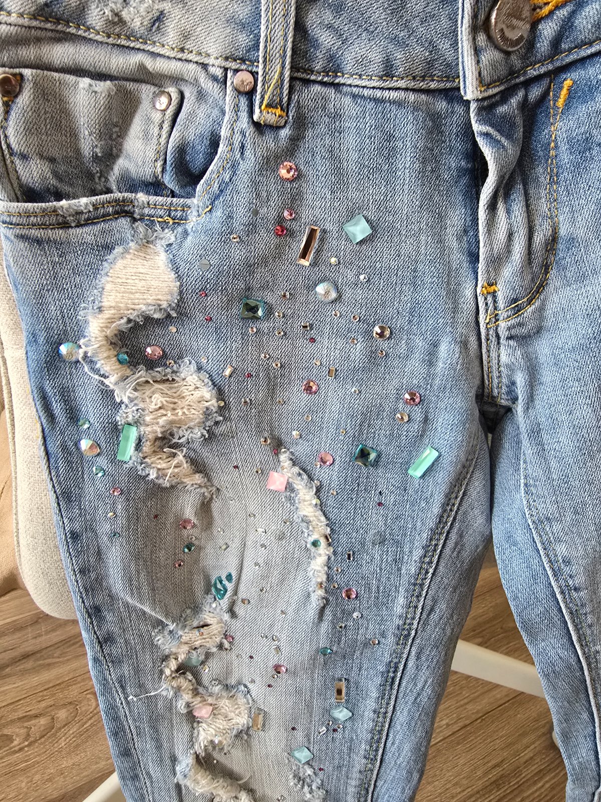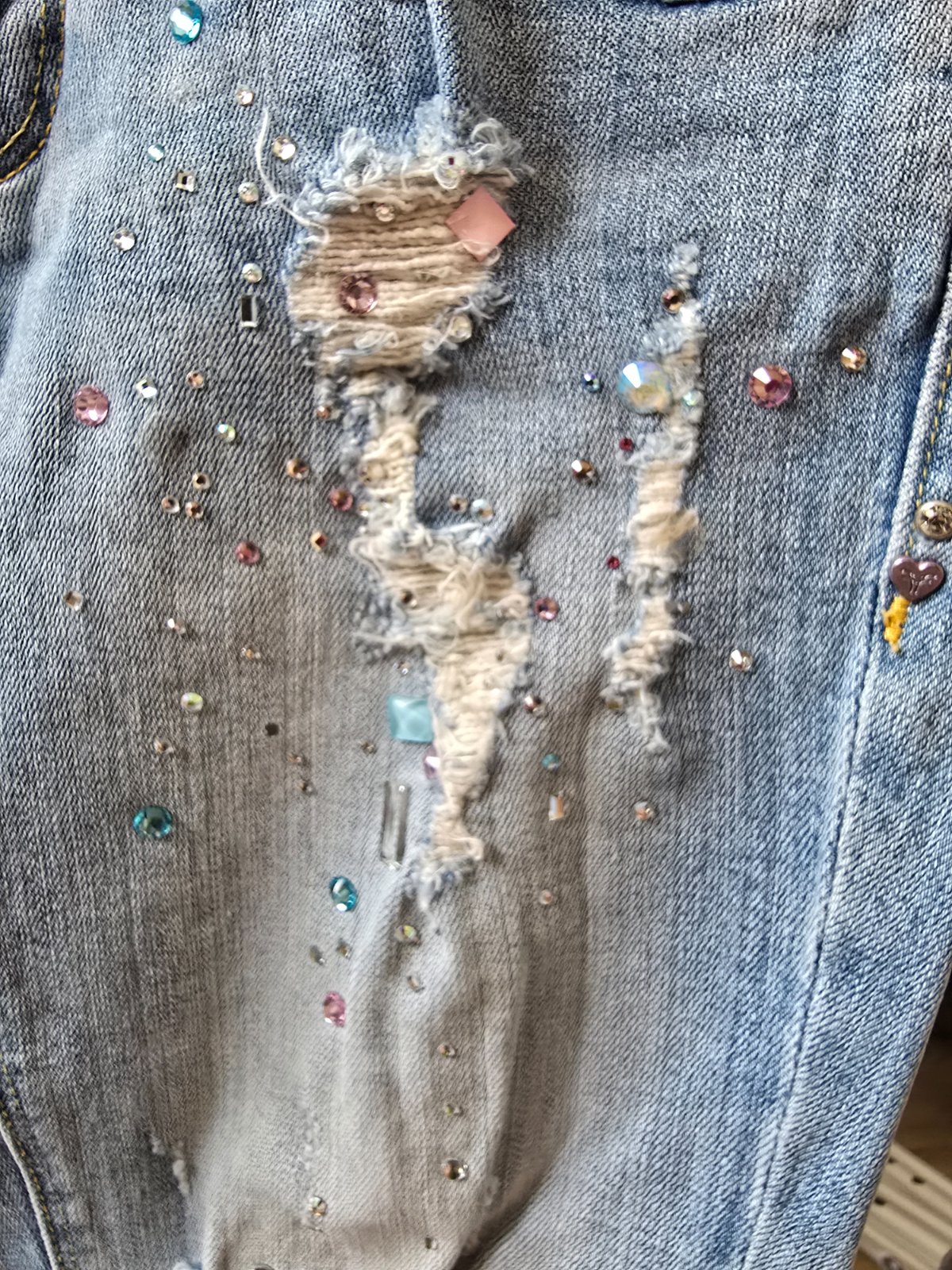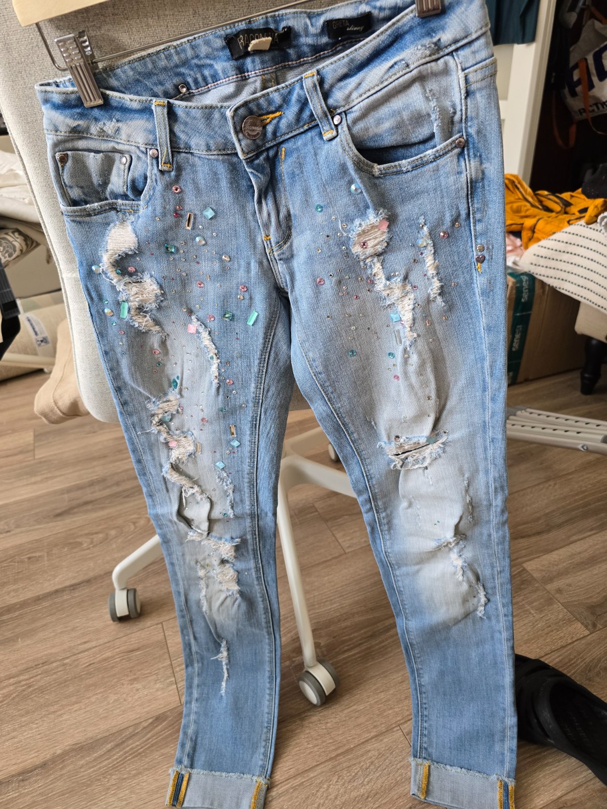Predám perfektne tmavomodre rifliky Fracomina - v super stave - zloženie bavlna + elastan - veľkosť max. 36 - robia super postavu - vzadu vrecka bohato zdobene štrasom Rozmery : - pás - bedra - 38...