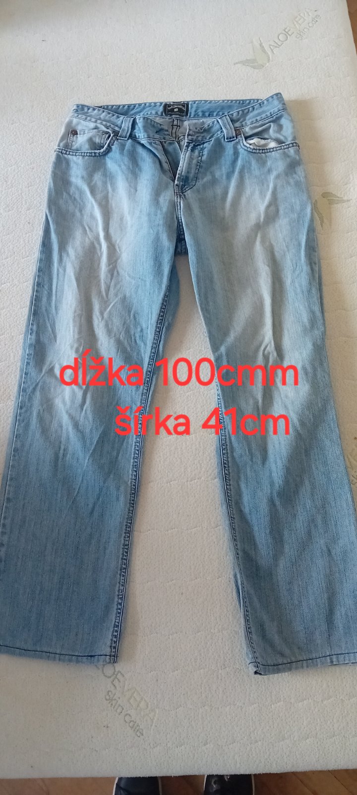 pár krát oblečené, ako nové, č 34 bočná dlžka 107 cm, vnutorna dlžka 80 cm, pás 43 x 2, predný sed 30 cm merané aj s pásom, zadný sed 42 cm merané aj s pásom, šírka stehna v rozkroku 35cm cena 11€ ...