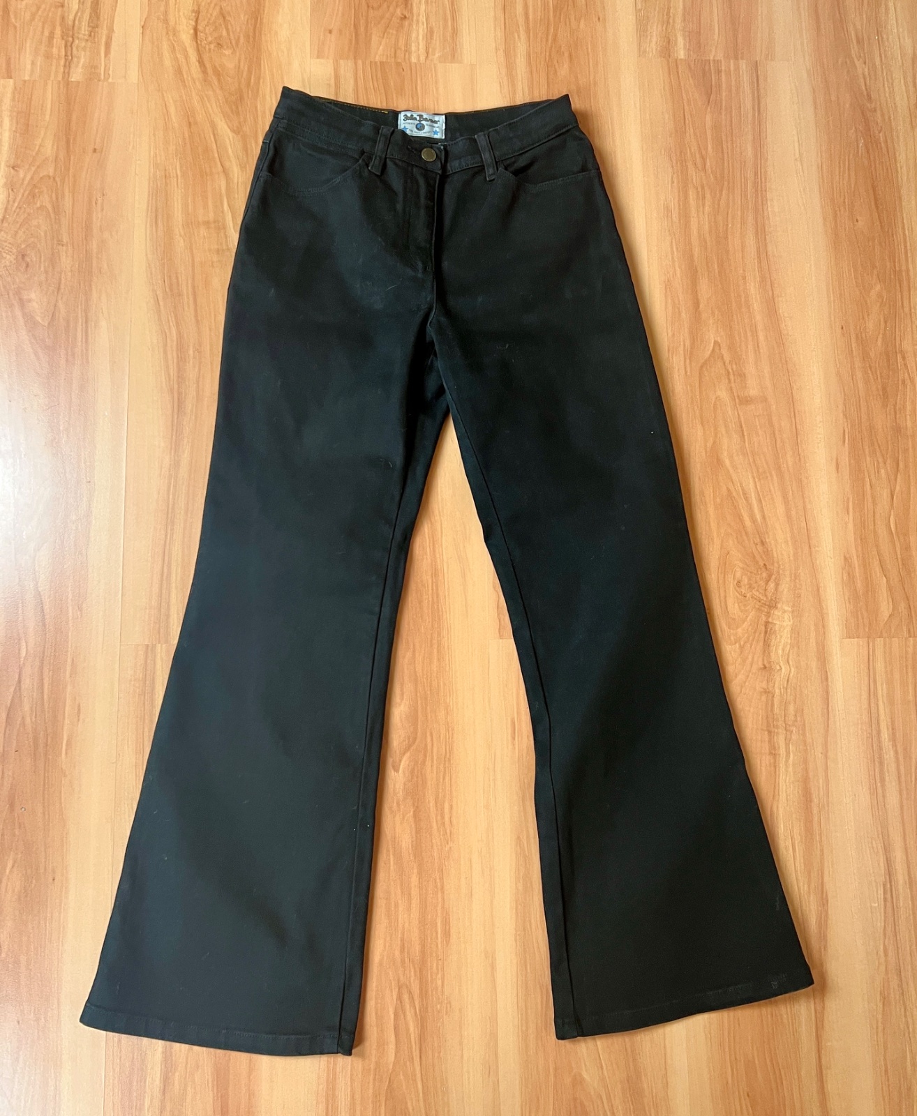 Čierne nohavice z pevného materiálu, moderného širokého strihu. V perfektnom stave, boli raz oblečené.