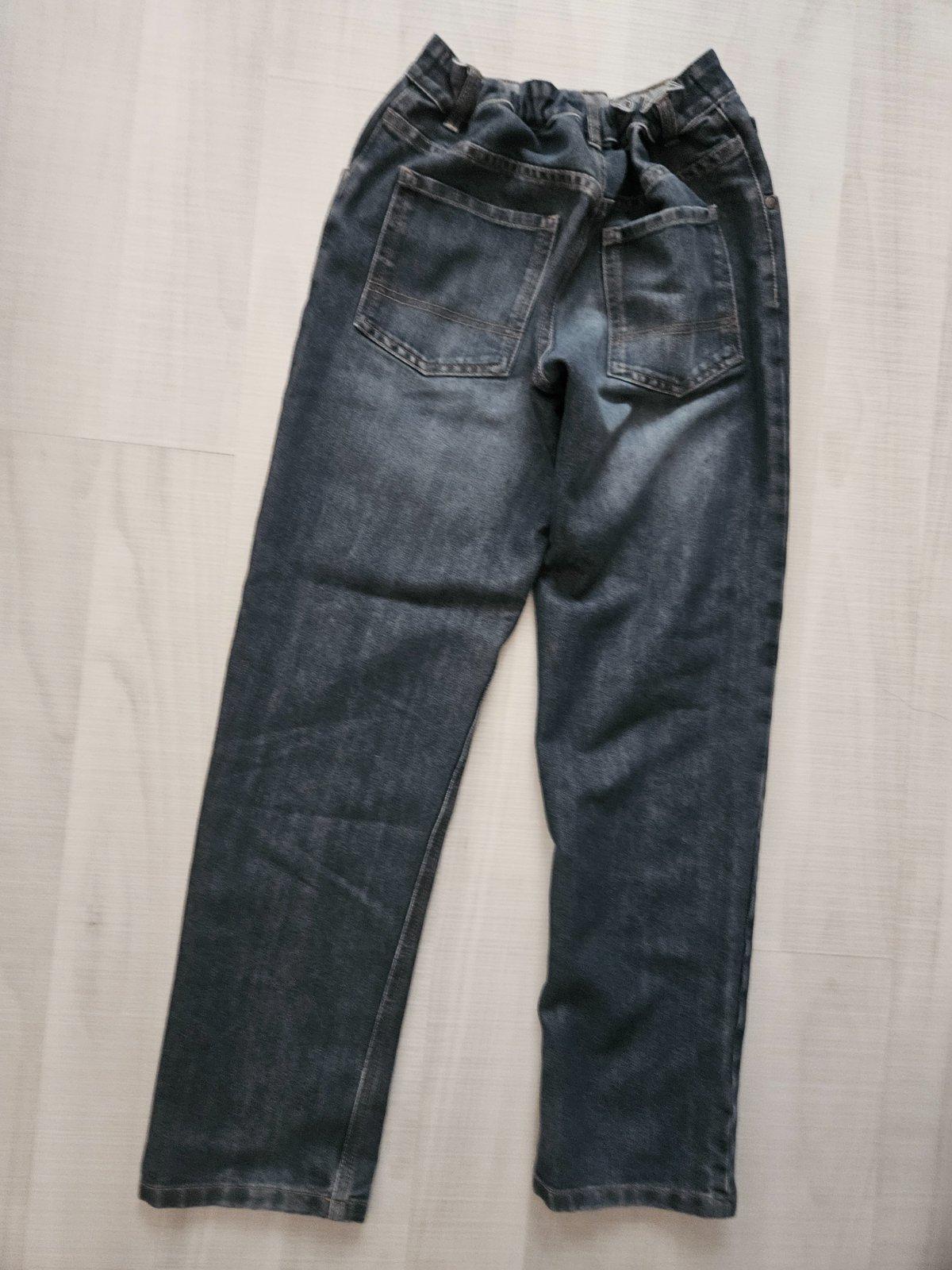 V dobrom stave, až na vyšúchané dolné záložky na ZD. Farba tmavá modrá. Mäkká rifľovina. V páse nastaviteľná guma. Dĺžka: 95cm / od rozkroku: 68,5cm Obvod bokov: 51x2cm Obvod pása maxim.: 39x2cm Ob...
