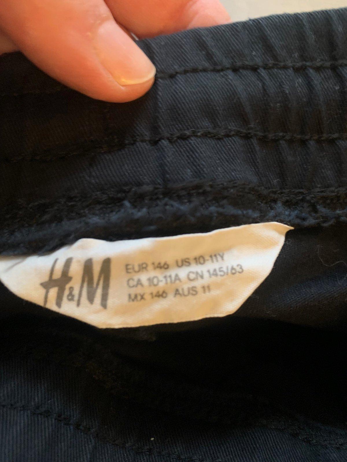 Predám nohavice H&M, čierna farba, veľkosť: 146, kupované nové, po jednom dieťati, vo výbornom stave, bez poškodení, bez fľakov, rozmery viď foto.